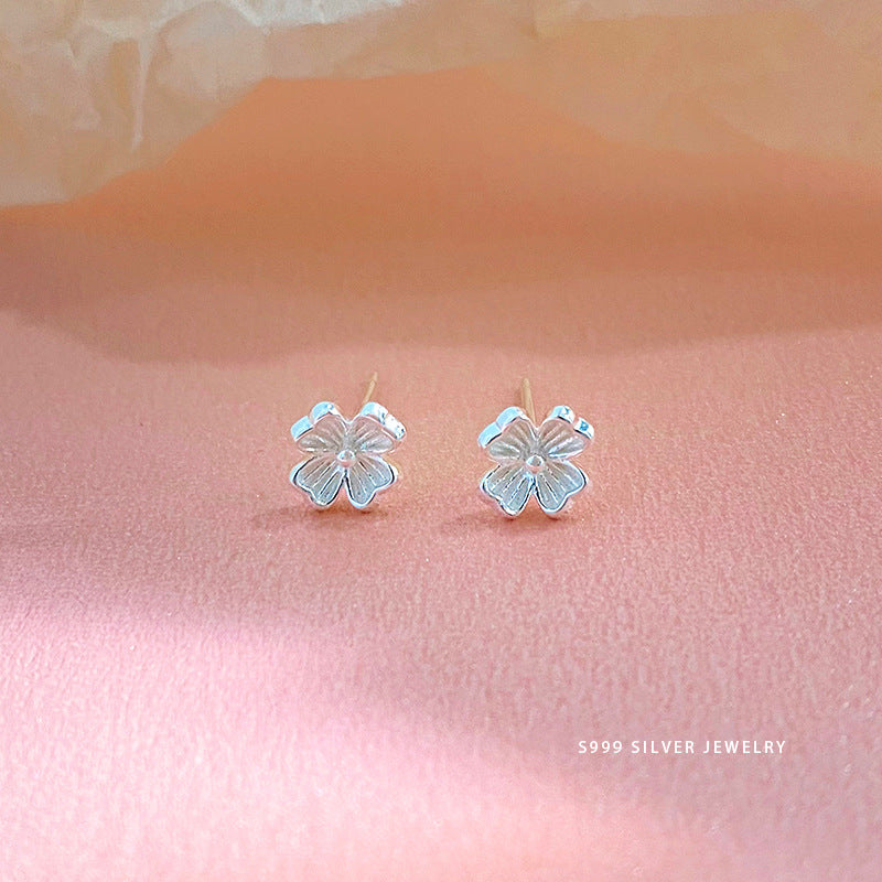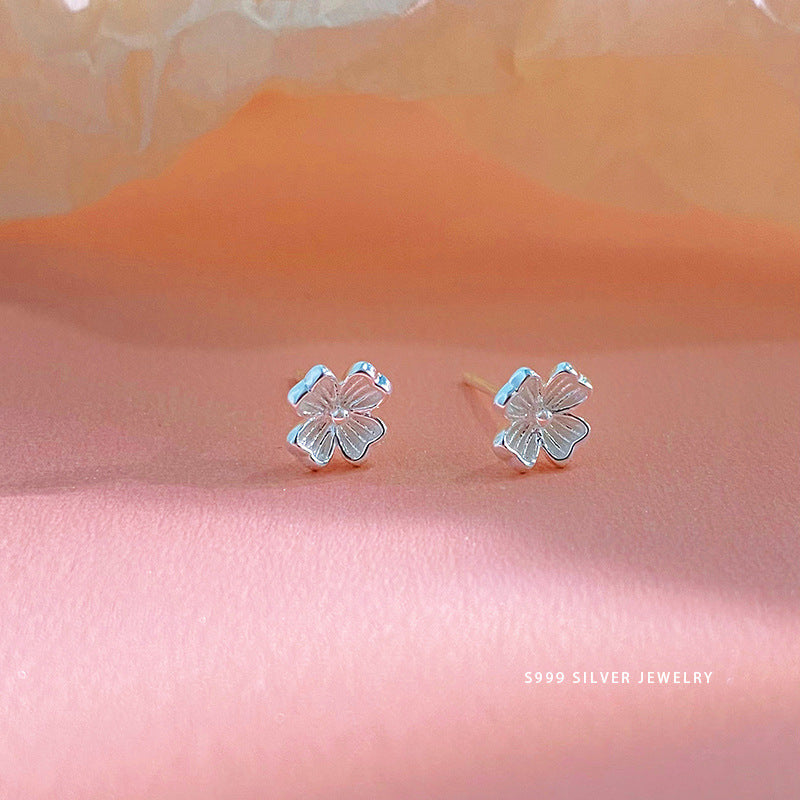E廠【YC10207E】S999足銀甜美花朵四葉花耳環女小眾設計感個性百搭耳環 24.06-2