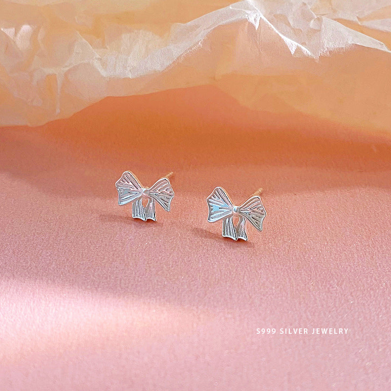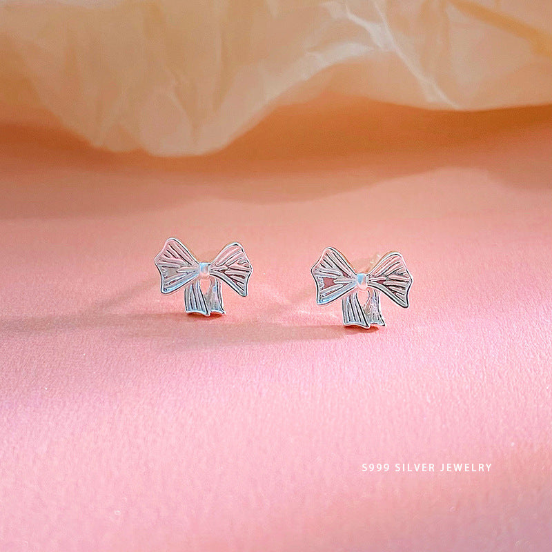 E廠【YC10208E】S999足銀甜美蝴蝶結耳環女蝴蝶結可愛時尚百搭耳飾 24.06-2