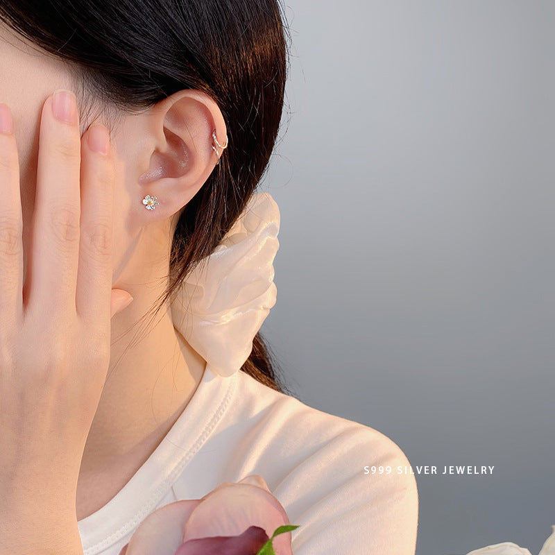 E廠【YC10227E】S999足銀迷你花朵小雛菊耳環女小巧精緻甜美養耳洞耳飾 24.06-2
