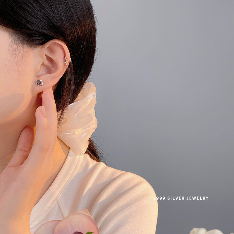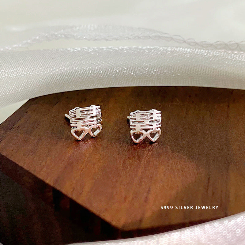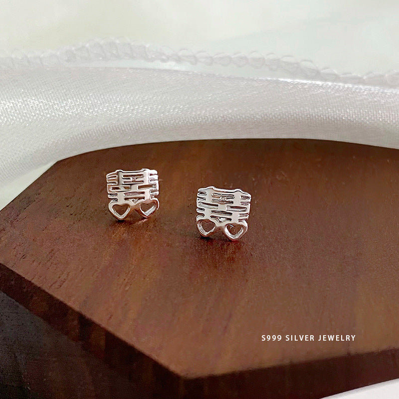 E廠【YC10231E】S999足銀個性獨特冷淡風格囍字耳環女高級感輕奢耳飾品 24.06-2