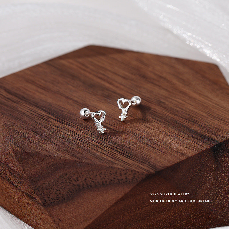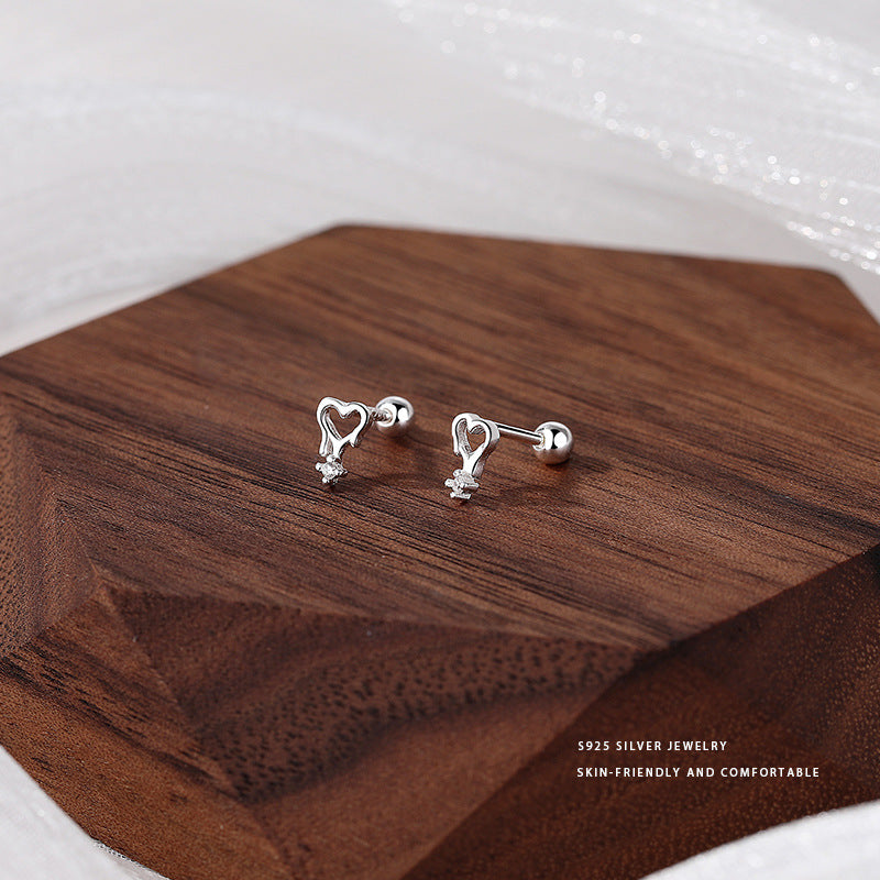 E廠【YC10252E】S925純銀個性熔岩愛心螺絲耳環女時尚設計感ins甜酷風耳環 24.05-5