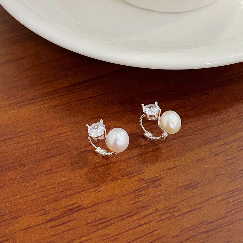 E廠【YC10266E】S925純銀個性鋯石珍珠耳扣女輕奢簡約百搭2024爆款耳環 24.06-3