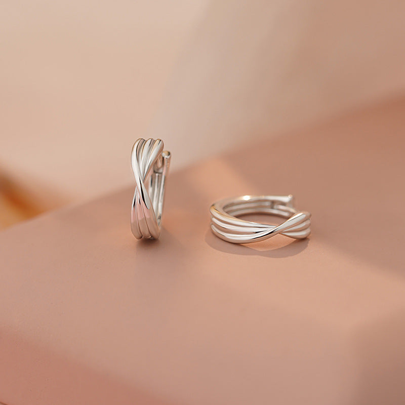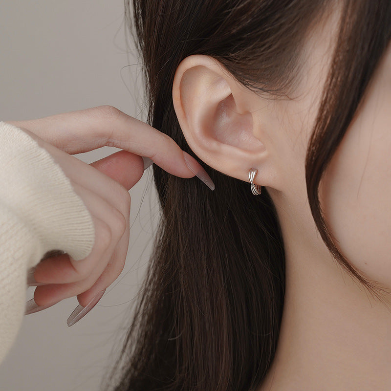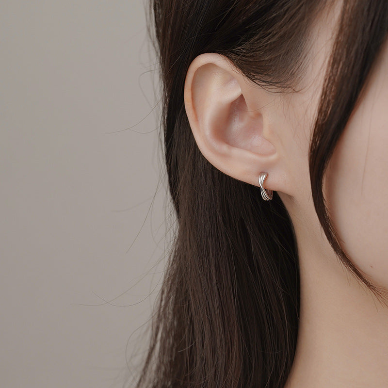 E廠【YC10277E】S999足銀個性扭轉條紋耳扣女甜酷風時尚百搭簡約學生耳飾 25.03-2