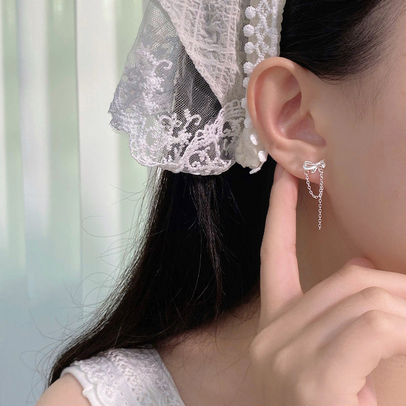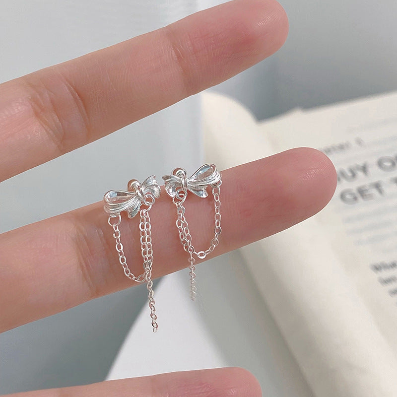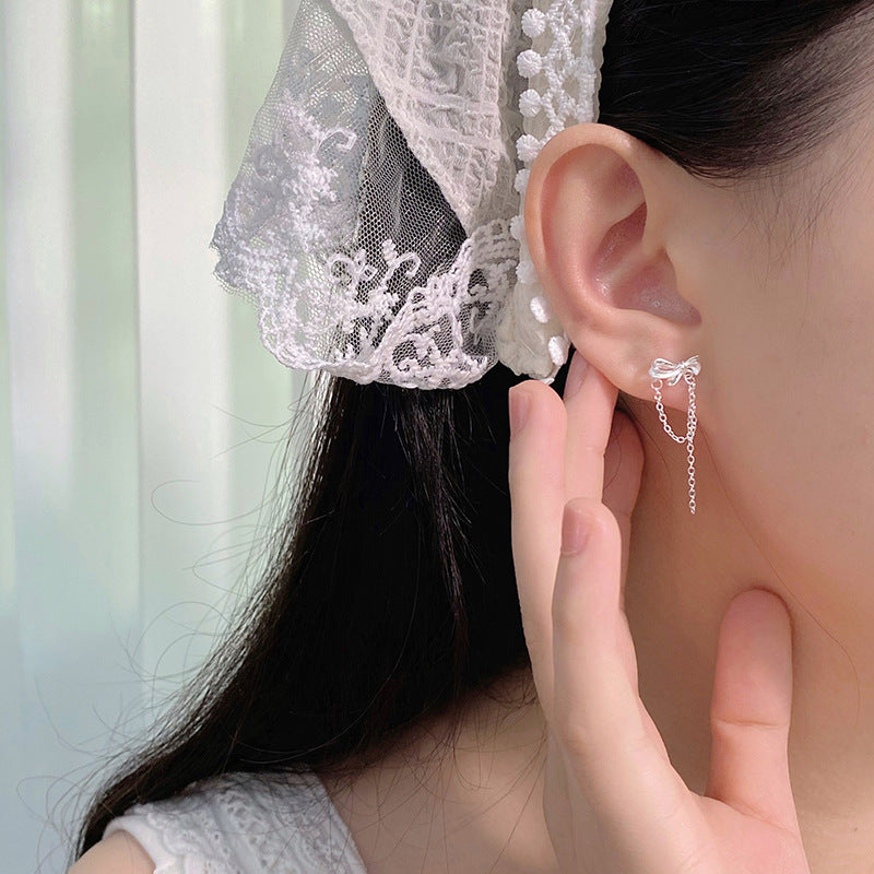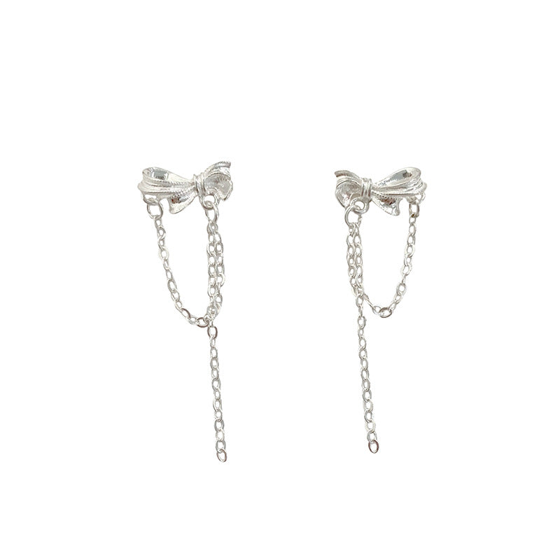 E廠【YC10287E】S999足銀蝴蝶結流蘇鏈條耳環清新田園風甜美女生百搭耳飾 24.07-3