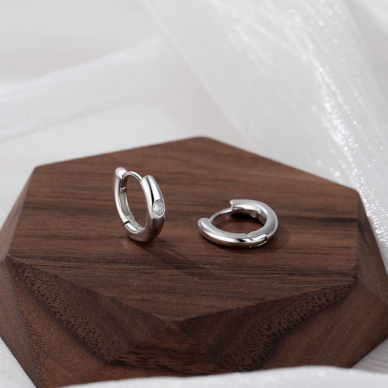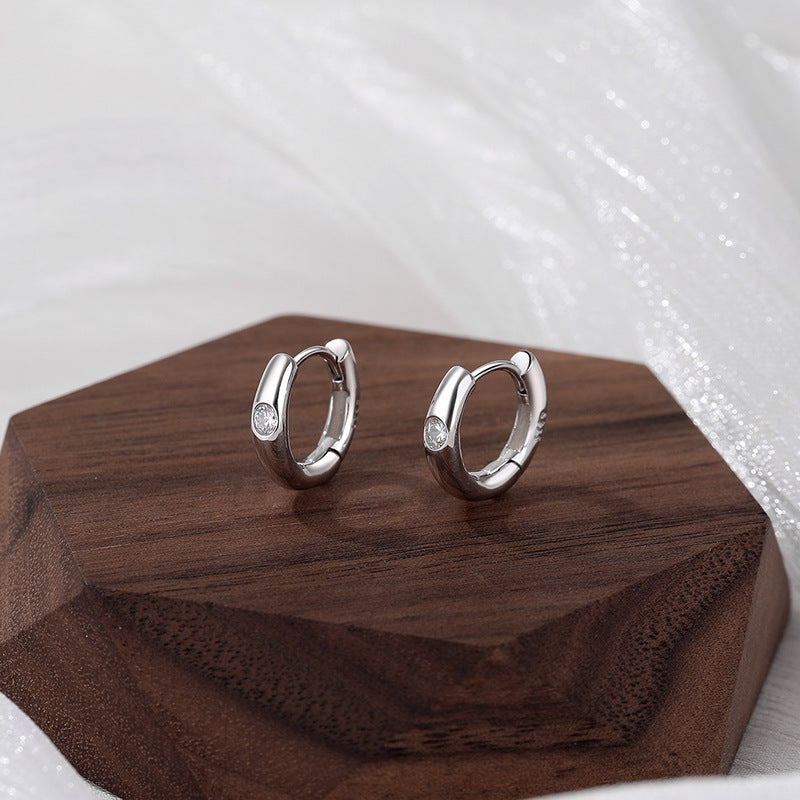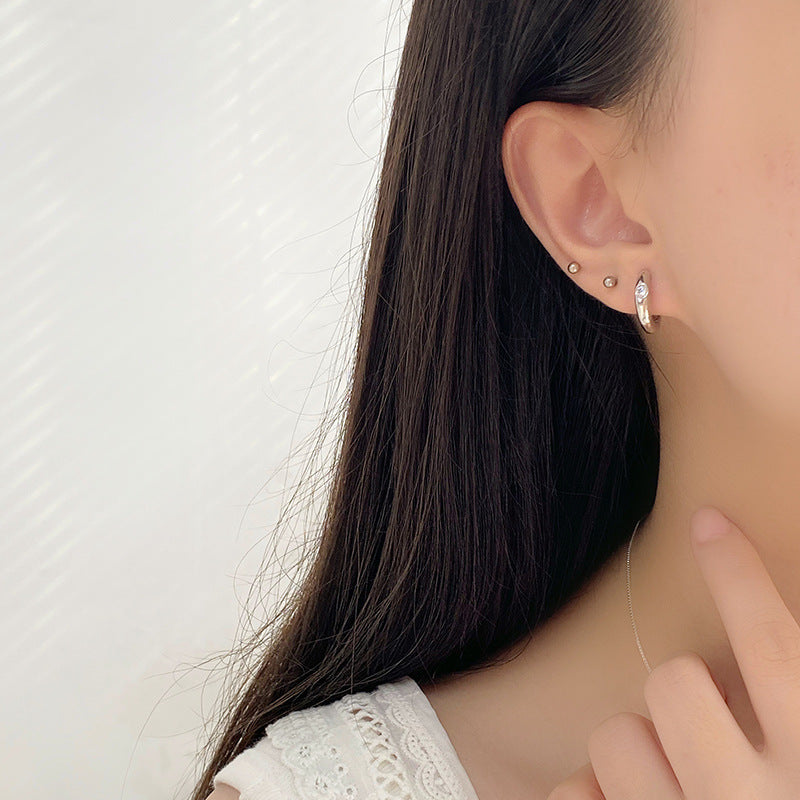 E廠【YC10298E】S925純銀通勤鋯石光面耳扣女簡約冷淡風高級感個性耳飾 24.06-4