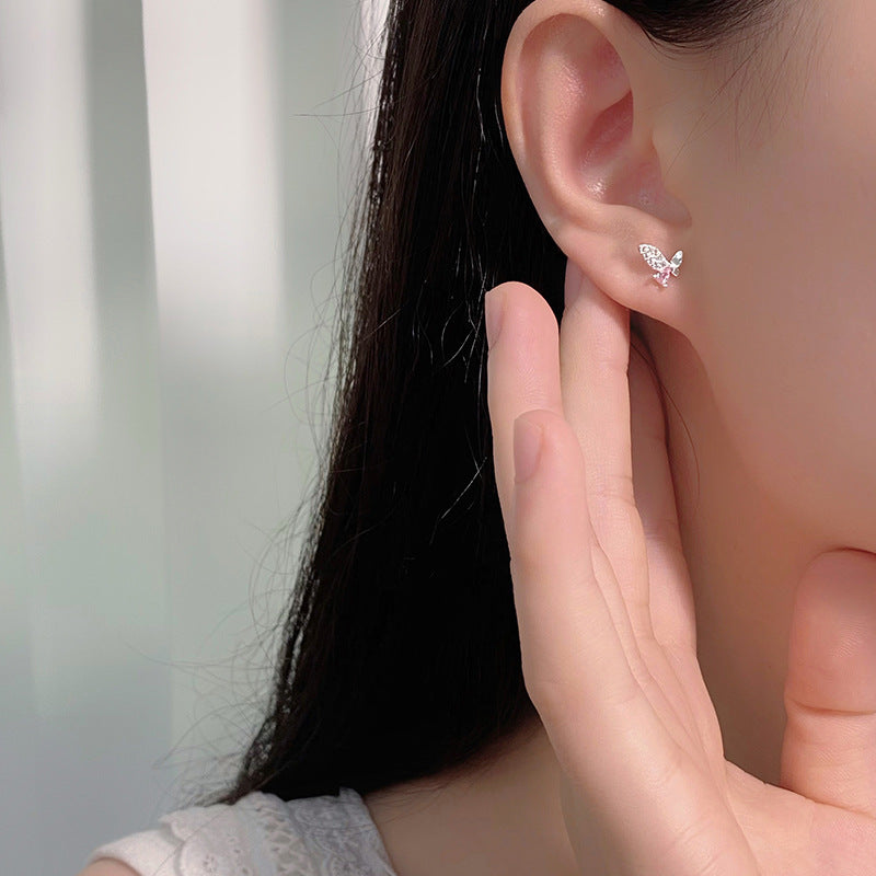 E廠【YC10315E】S999足銀S999新款蝴蝶耳環女輕奢小眾設計感小眾簡約耳飾 24.07-4