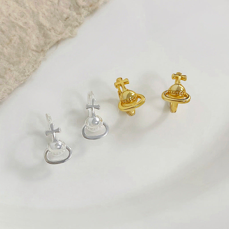 E廠【YC10322E】S925純銀高級十字架星球耳扣女設計感2024小眾輕奢耳飾 24.06-3