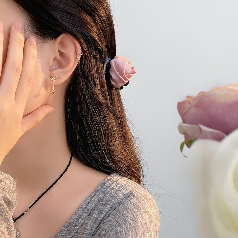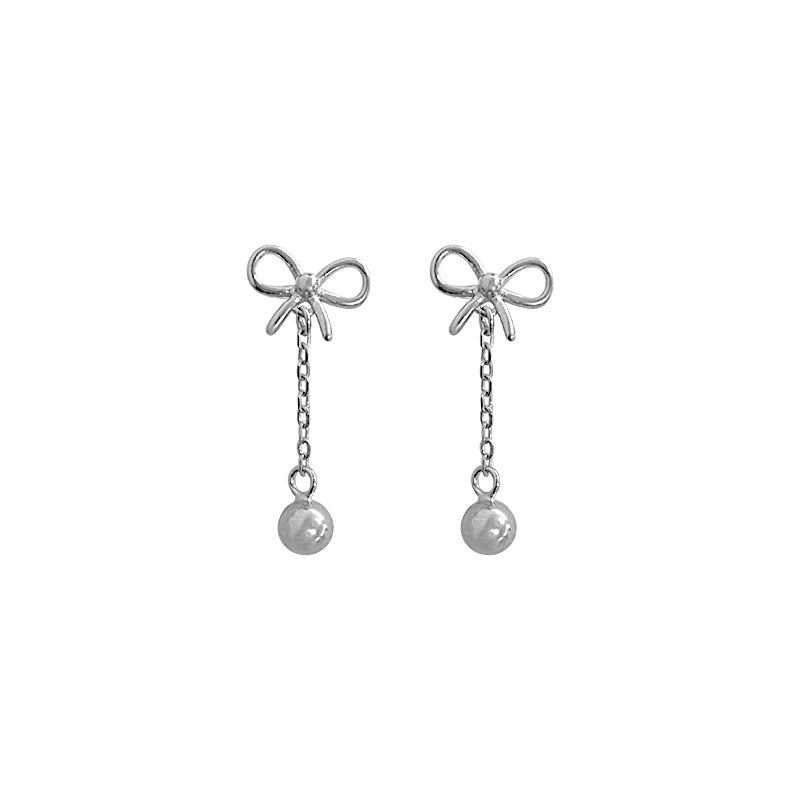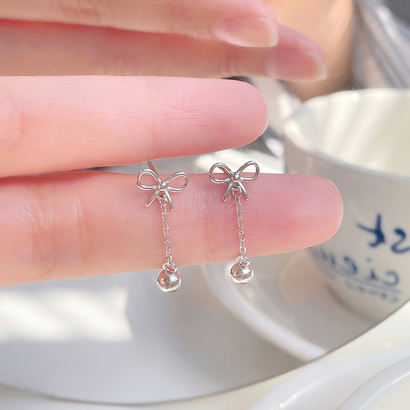 E廠【YC10327E】S925純銀時尚蝴蝶結圓珠流蘇耳環女百搭簡約個性輕奢耳飾 24.06-3