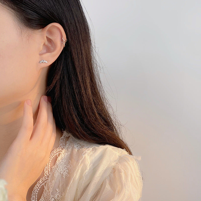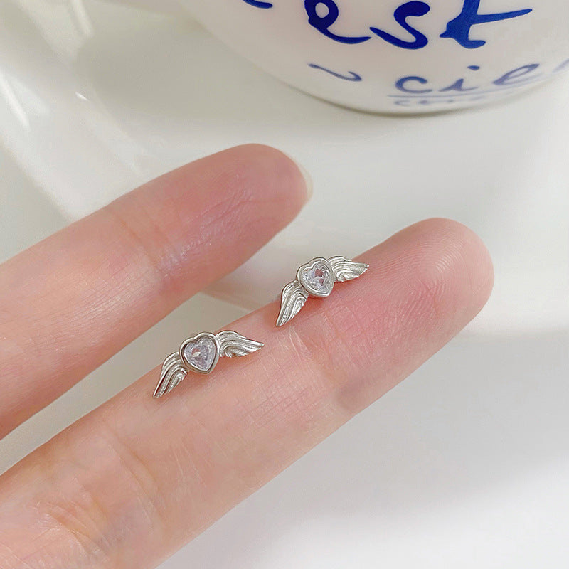 E廠【YC10332E】S925純銀愛心翅膀耳環女個性簡約通勤百搭ins風高級耳環 24.06-3