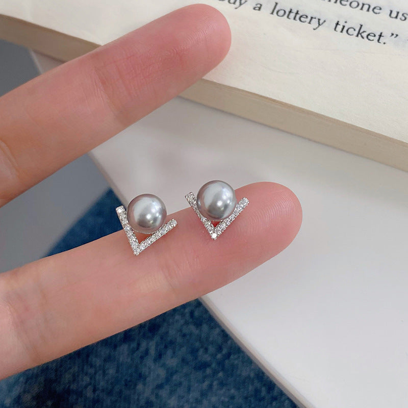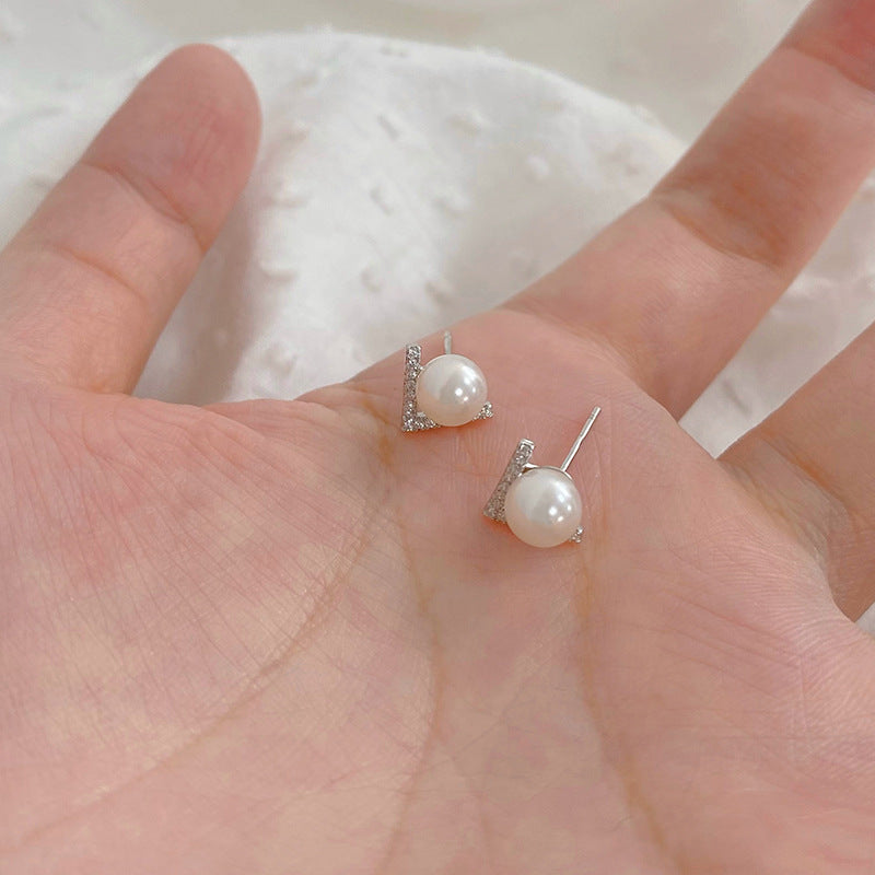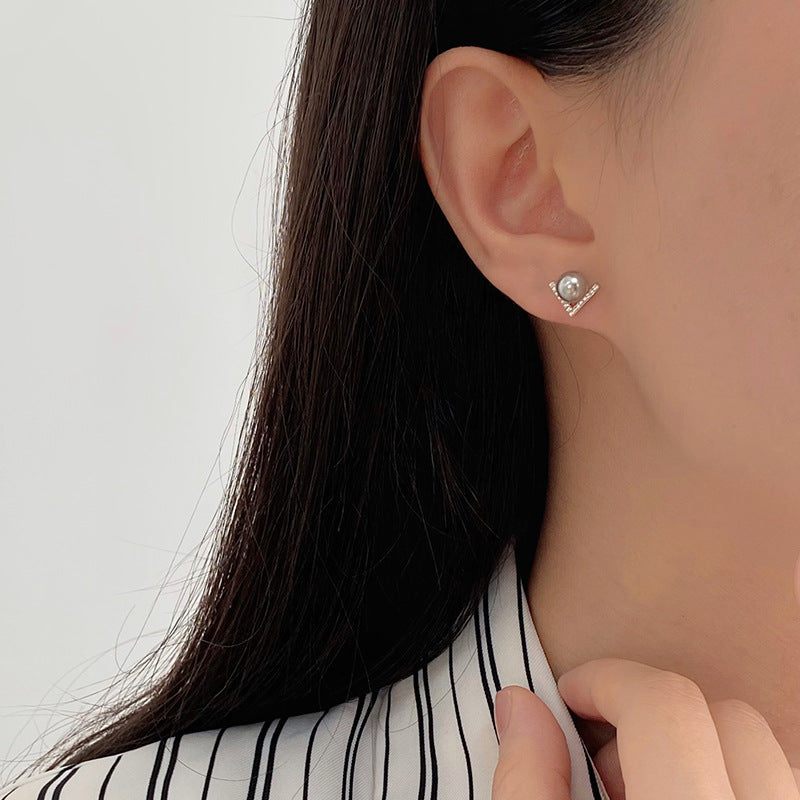 E廠【YC10372E】S925純銀V字珍珠耳環輕奢感高級設計精緻小眾養耳洞耳飾 24.07-3