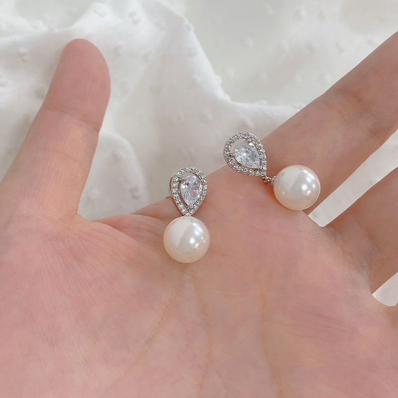 E廠【YC10373E】S925純銀水滴珍珠耳環輕奢可愛小眾精緻氣質女神養耳洞 24.07-3