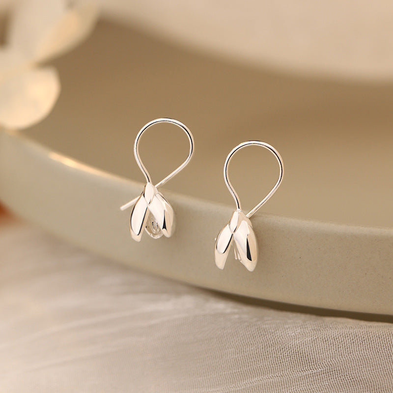 E廠【YC10390E】S999足銀玉蘭花耳鉤秋冬新款氣質百搭清新小眾養耳洞耳飾 24.12-1