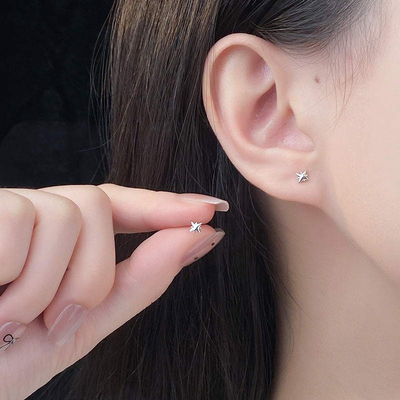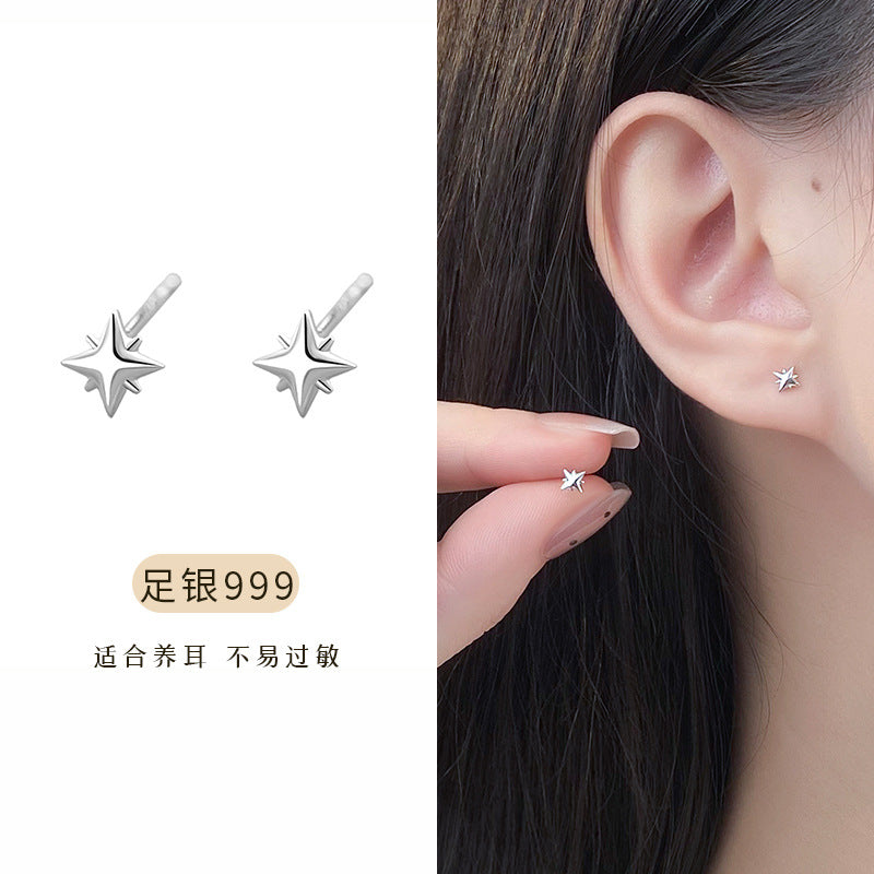 E廠【YC10400E】S999足銀八芒星耳環清新可愛養耳洞睡覺免摘小眾設計耳飾 24.10-1