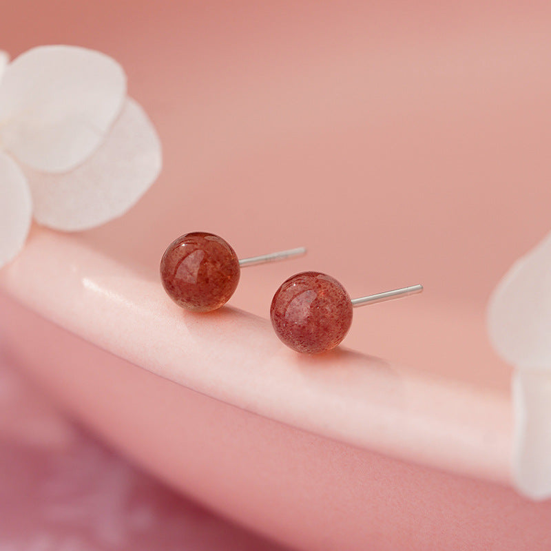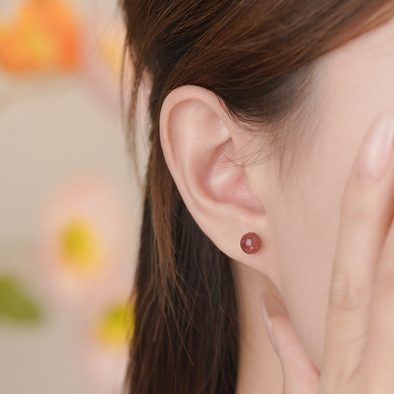 E廠【YC1148S】S999足銀草莓晶耳環簡約款甜美甜心溫柔氣質韓風幾何耳飾 25.10-4