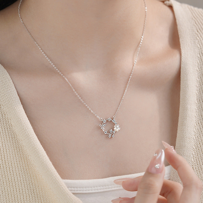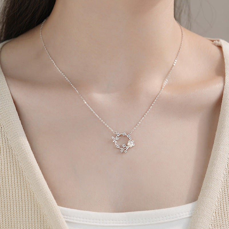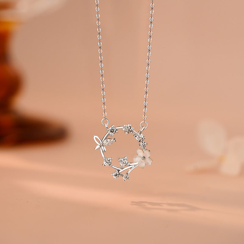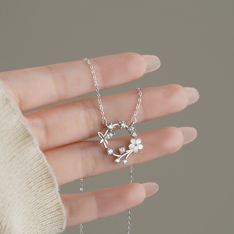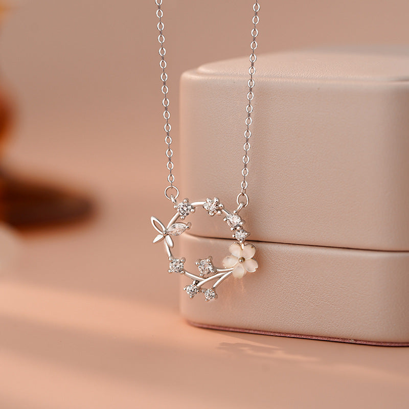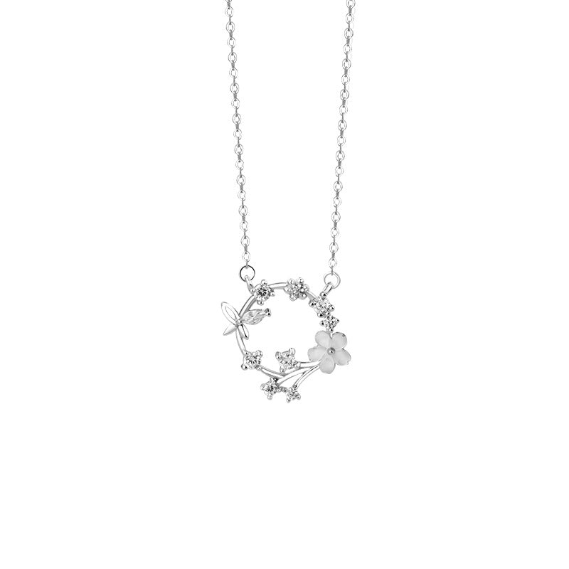 E廠【YC1220N】S999足銀花環蝴蝶項鍊清新甜美氣質小眾森系時尚鎖骨鏈 25.03-2
