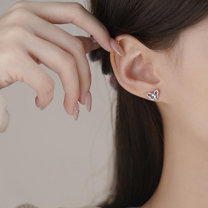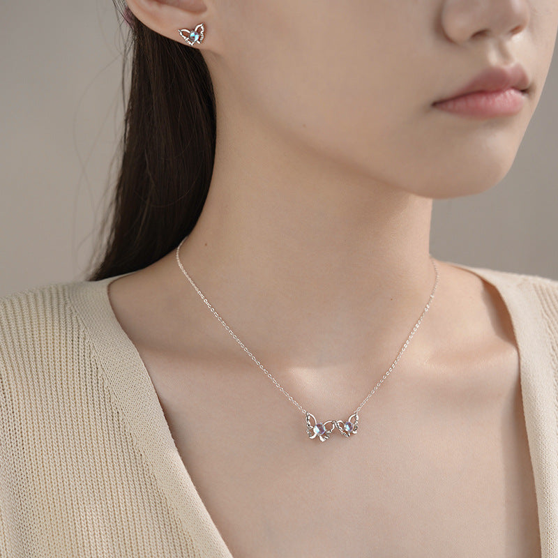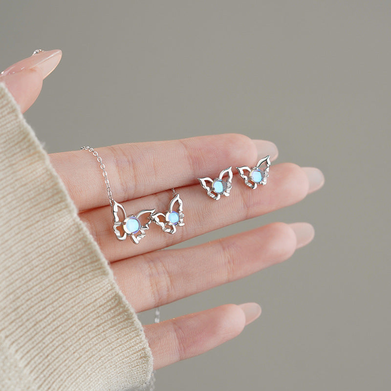 E廠【YC1347N】原創S925純銀蝶語流光套裝甜美溫柔獨特設計百搭超閃耳飾 25.03-2