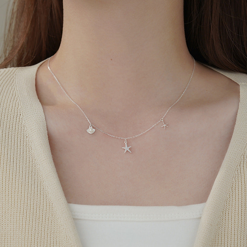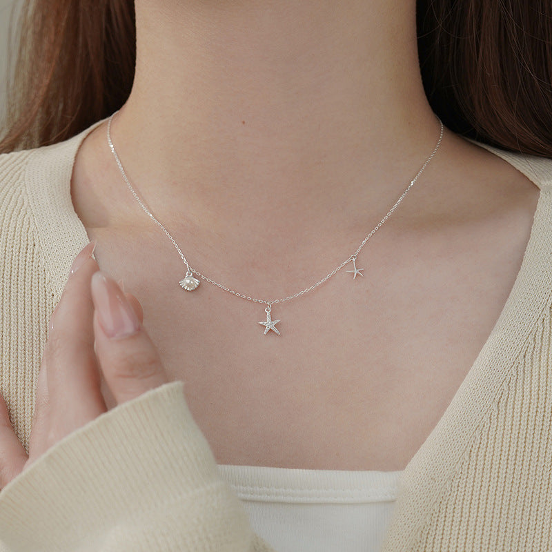 E廠【YC1419N】S925純銀貝殼星星項鍊氣質百搭甜美小眾清新文藝風鎖骨鏈 25.02-4