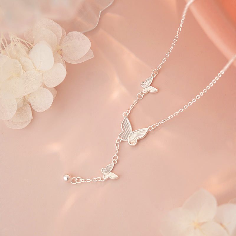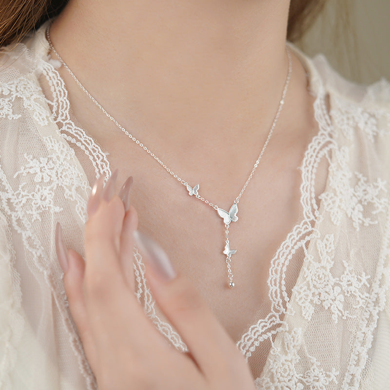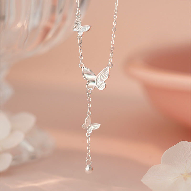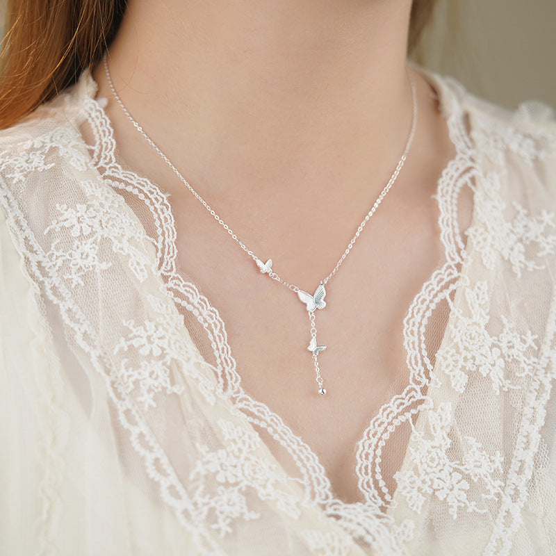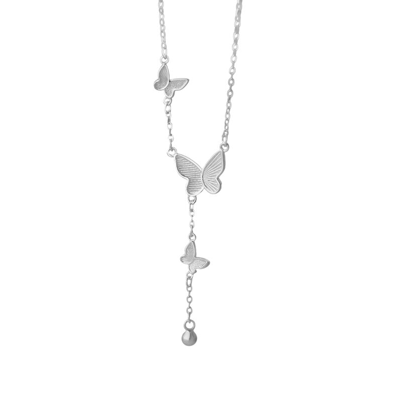 E廠【YC1547N】S999足銀蝴蝶圓珠流蘇項鍊爆款清新設計女韓風文藝鎖骨鏈 25.05-5
