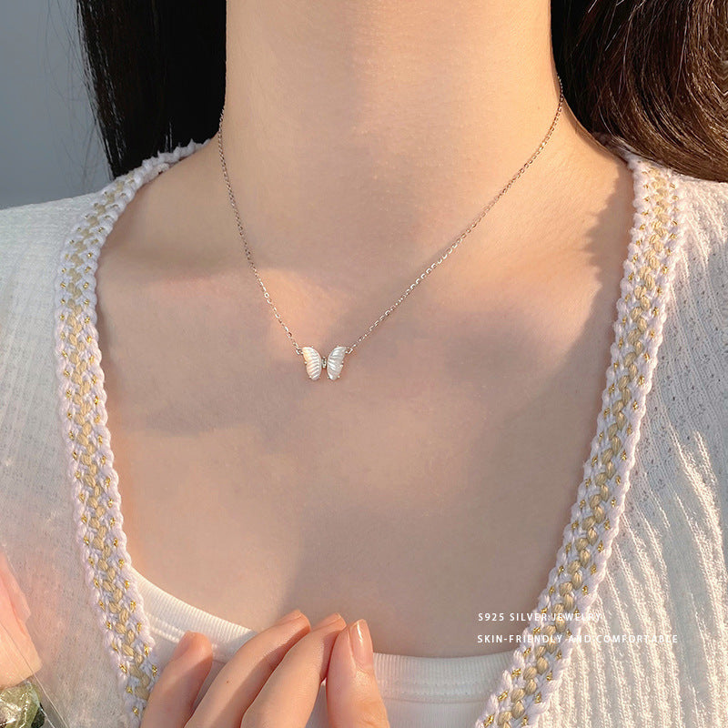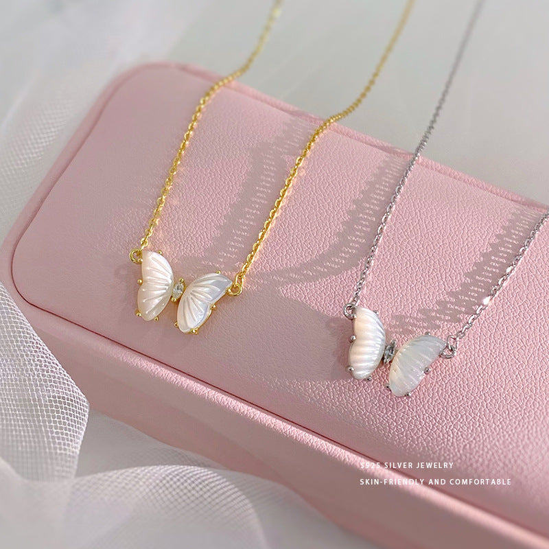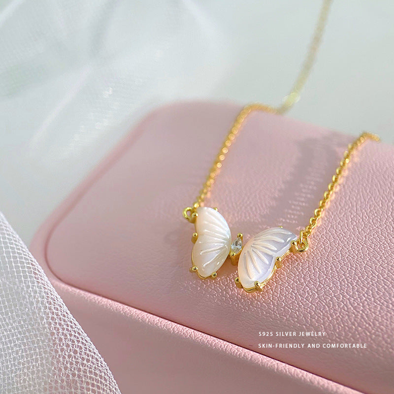 E廠【YC1576N】S925純銀氣質貝母蝴蝶項鍊女百搭鎖骨鍊女簡約輕奢高級頸飾 24.05-3