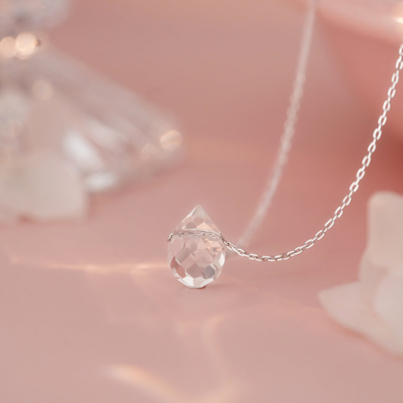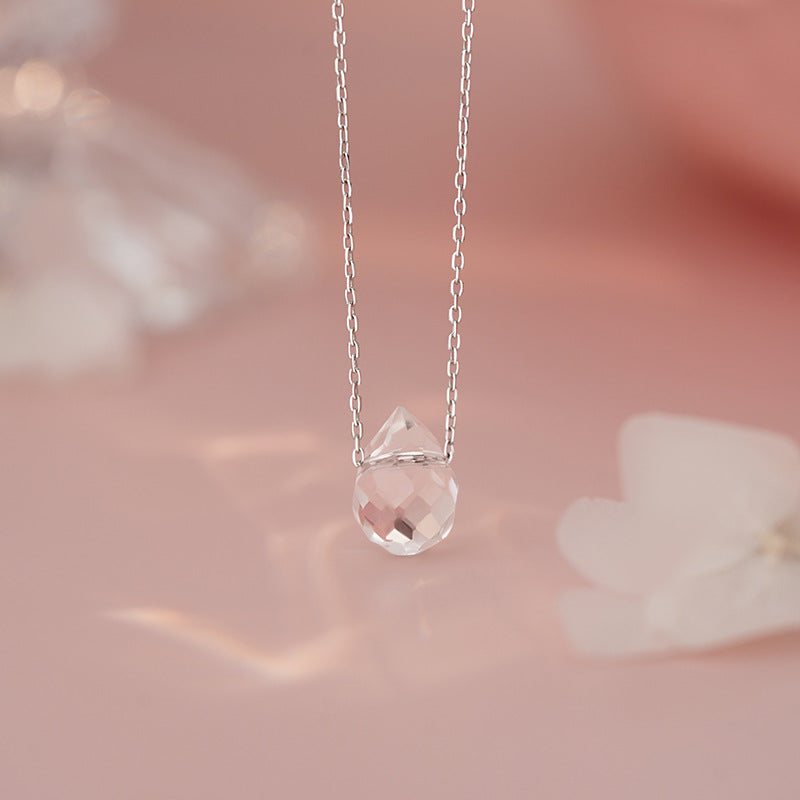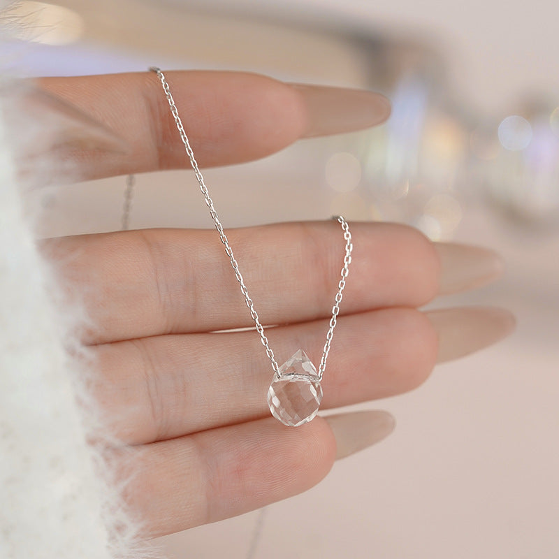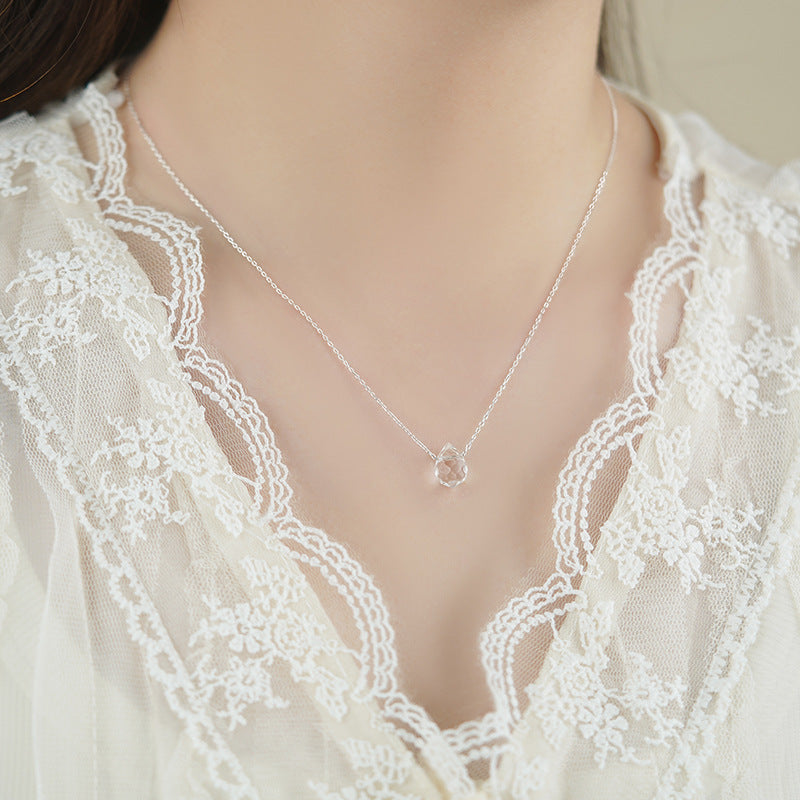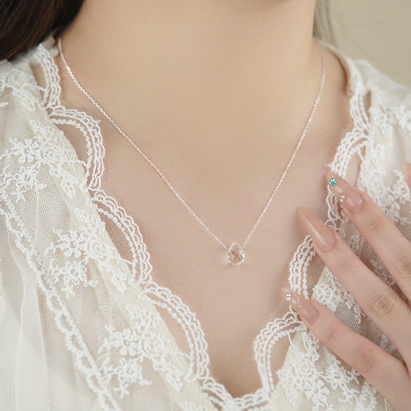 E廠【YC1836N】S925純銀切面水滴珠項鍊簡約自然日常韓風時尚文藝鎖骨鏈 25.06-2