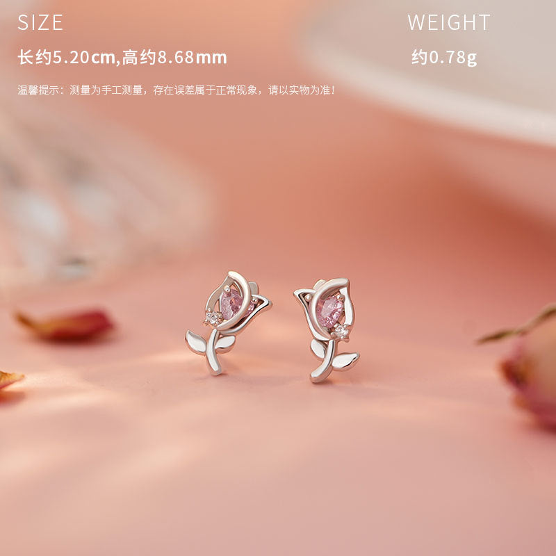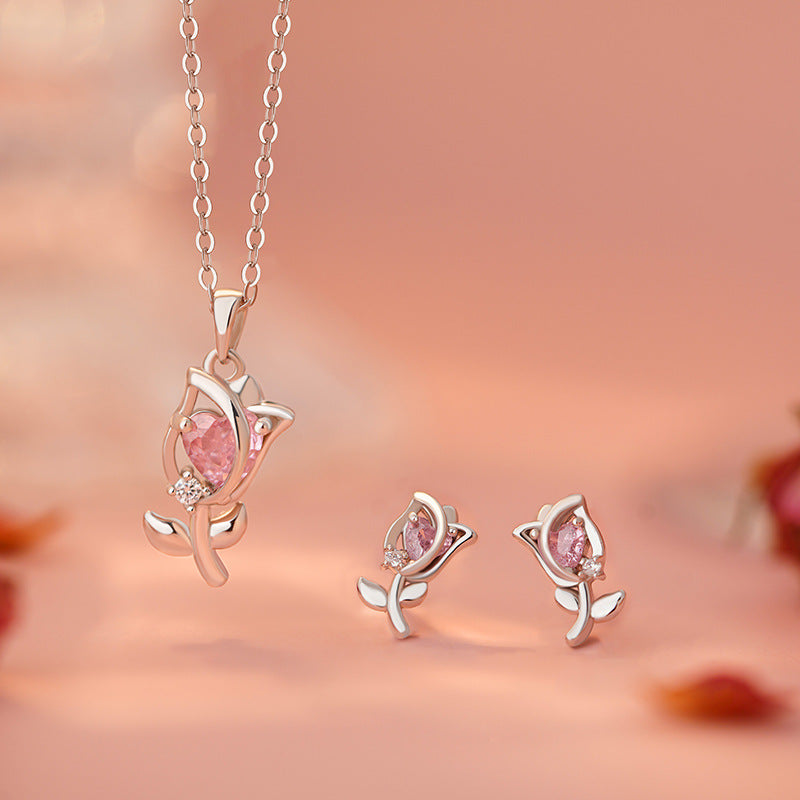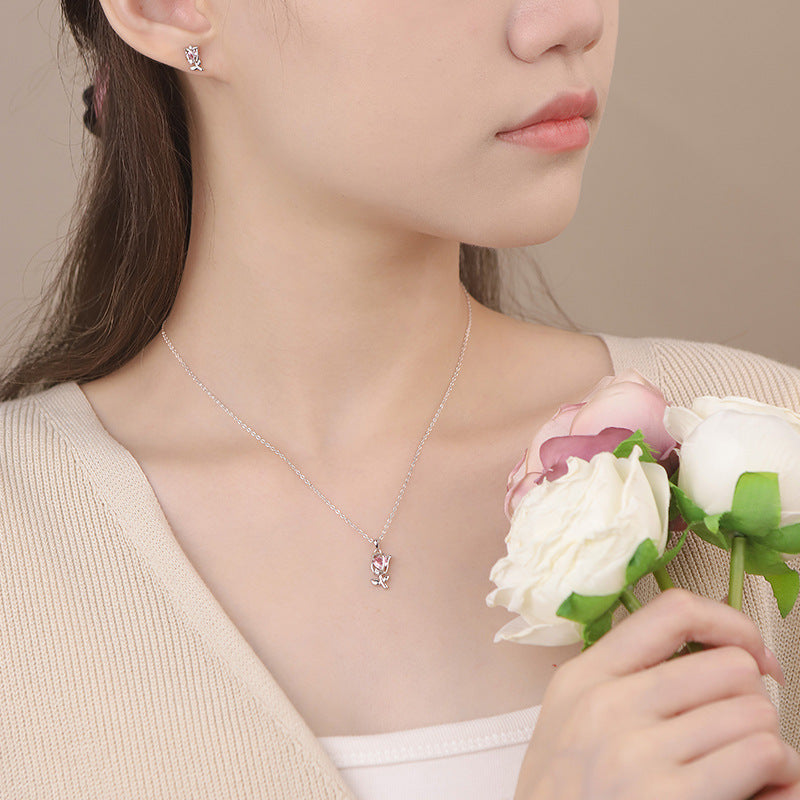 E廠【YC1957N】原創S999足銀心綻鬱金香套裝甜美風獨特溫柔氣質鎖骨鍊 25.04-2