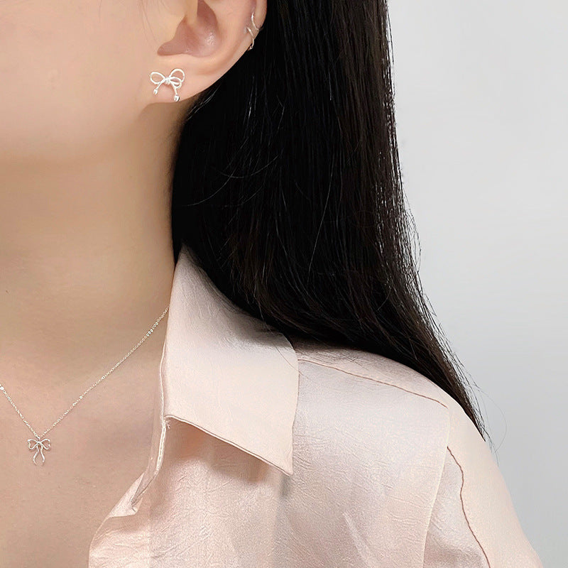 E廠【YC2029E】S925純銀簡約蝴蝶結耳環女小清新百搭氣質2024小眾耳飾 24.06-4