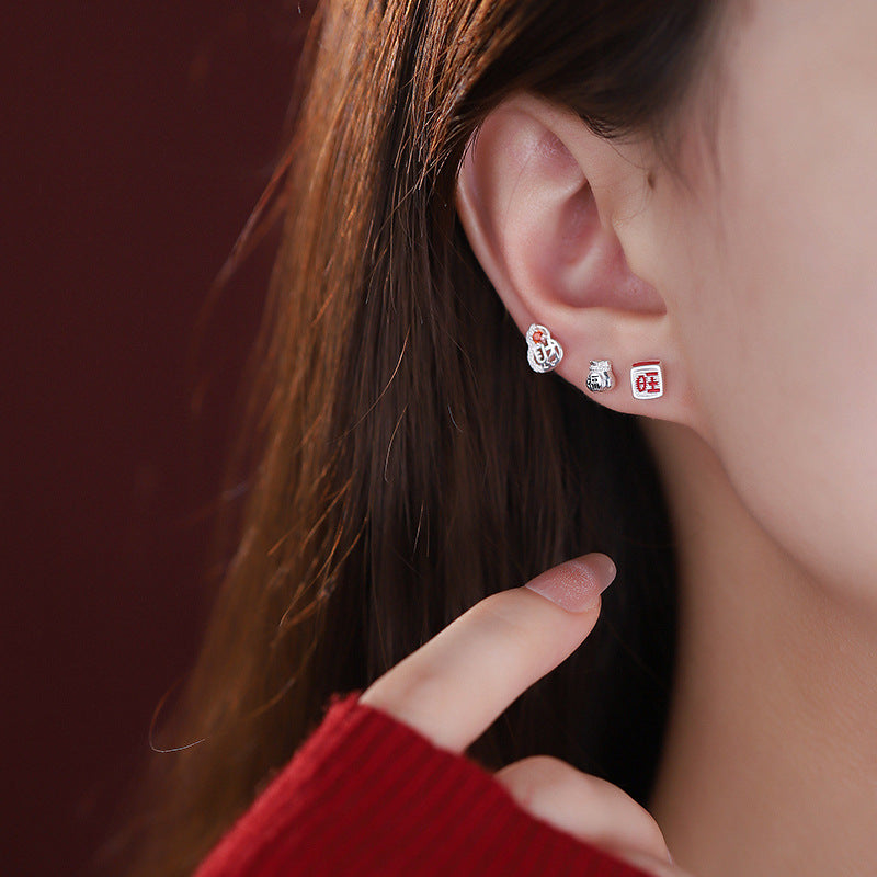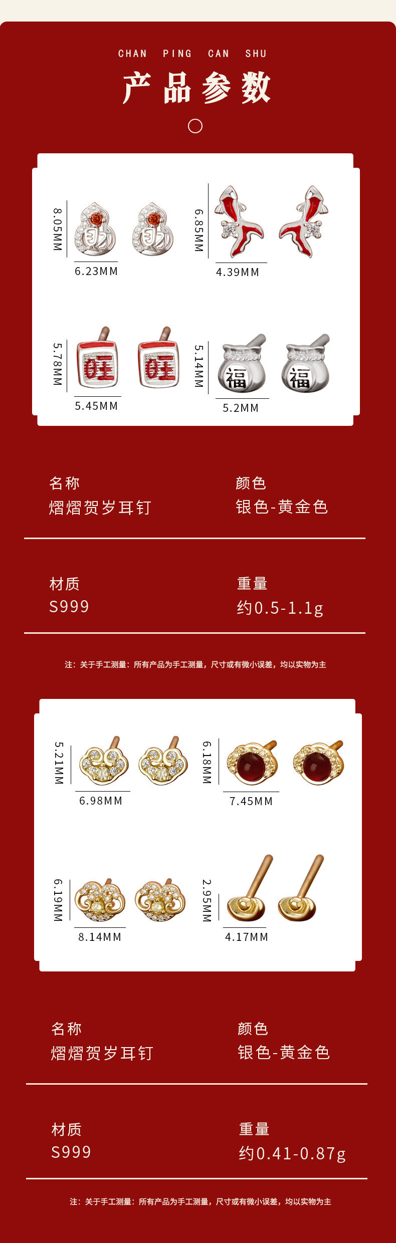 E廠【YC2030E】原創S999足銀巳蛇本命年鴻運吉祥新年福氣滿滿養耳洞耳飾 24.11-3