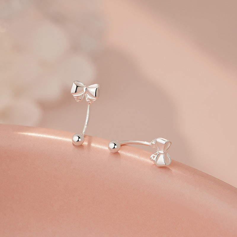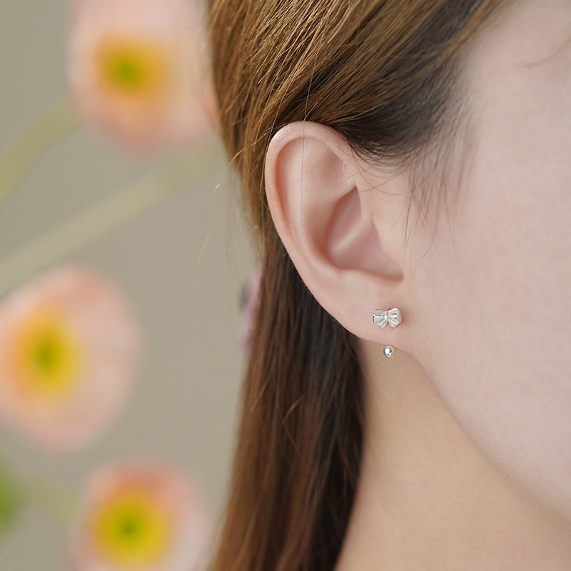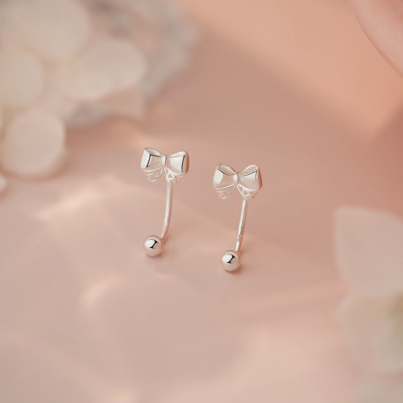 E廠【YC2066E】S999足銀韓版蝴蝶結彎鉤螺絲耳環藝術精緻溫柔風小眾耳飾 25.05-5