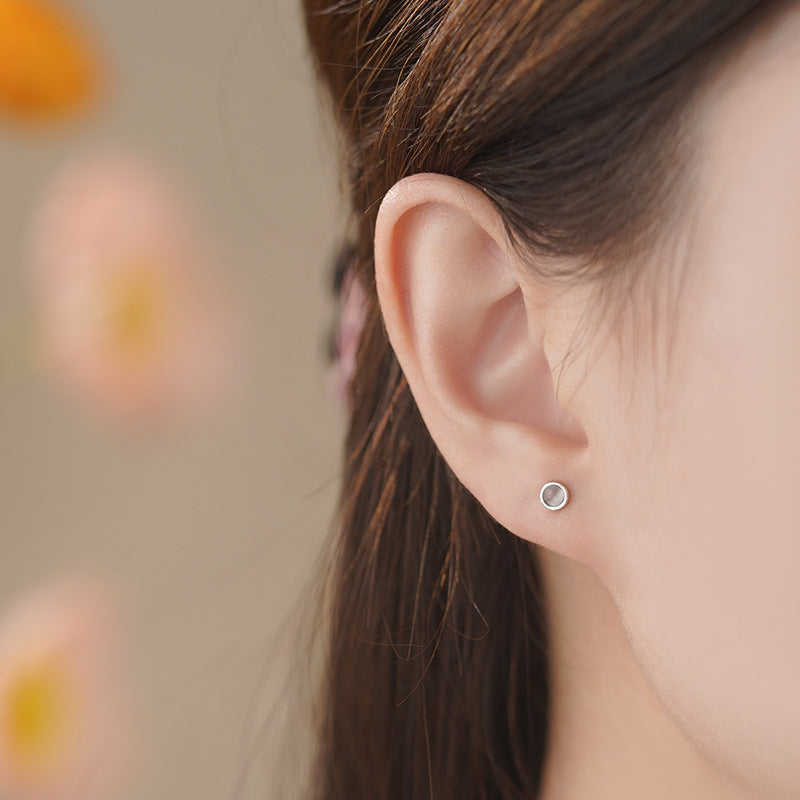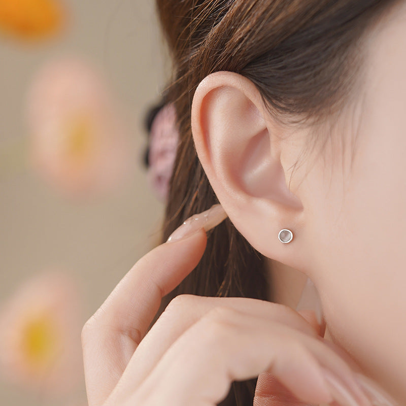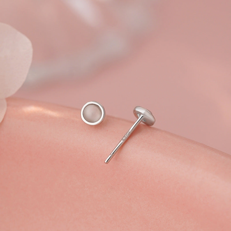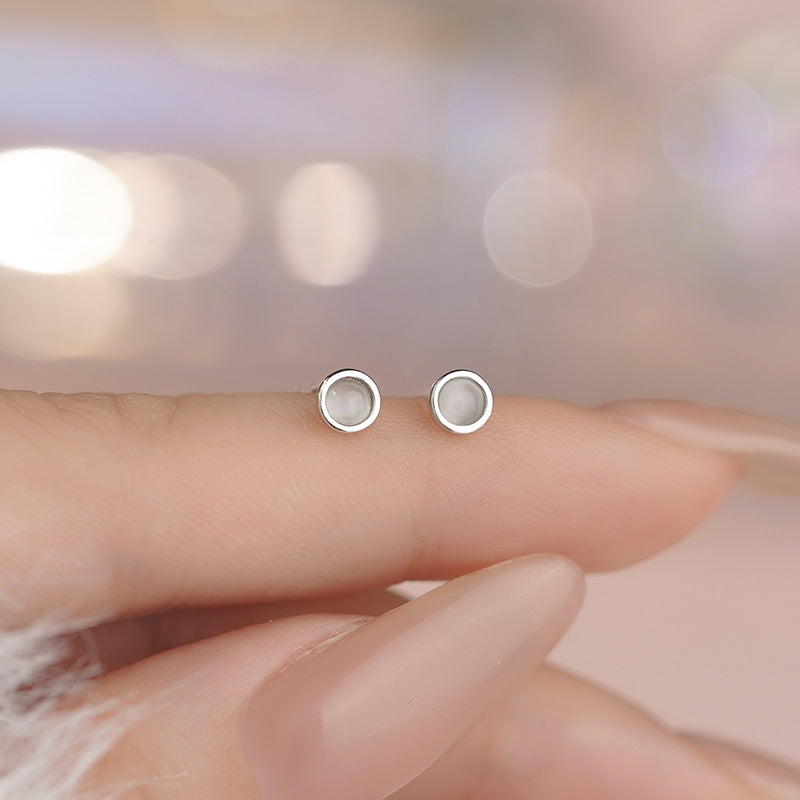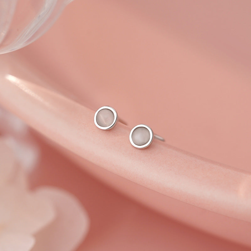 E廠【YC2112E】925純銀簡約貓眼石耳環女個性甜酷風文藝小清新氣質耳飾 25.06-3
