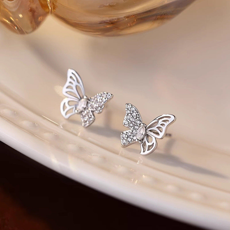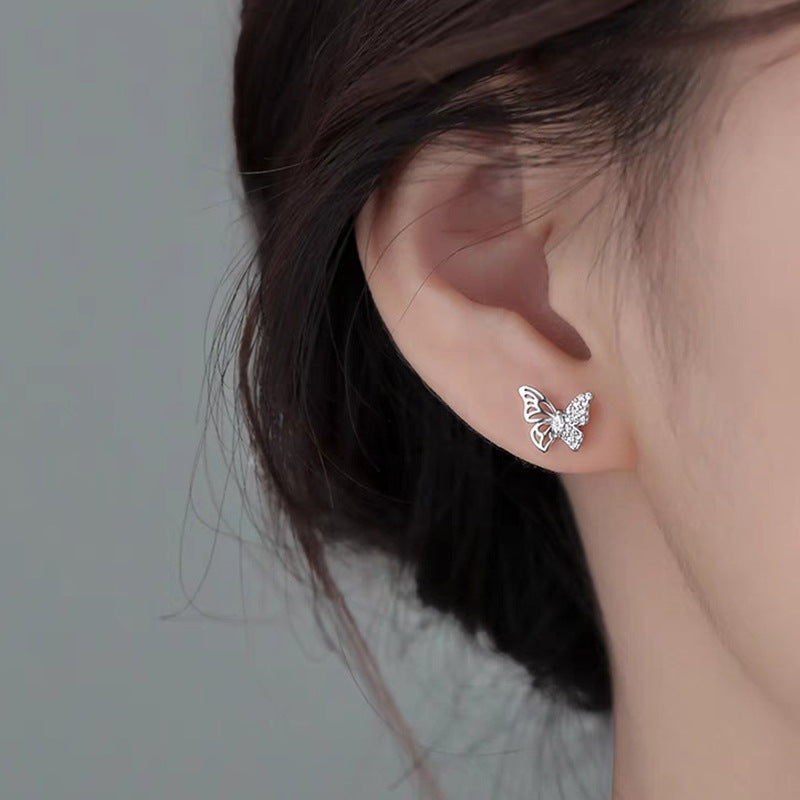 E廠【YC2153E】S999足銀氣質蝴蝶耳環女小眾高級設計甜美清新閨蜜耳飾 24.08-4