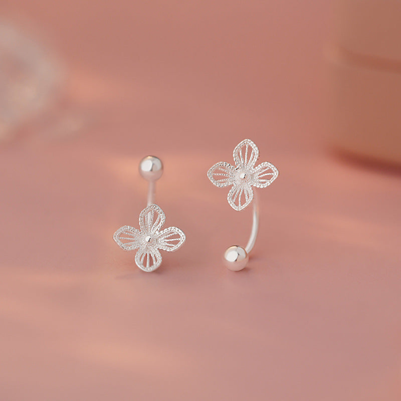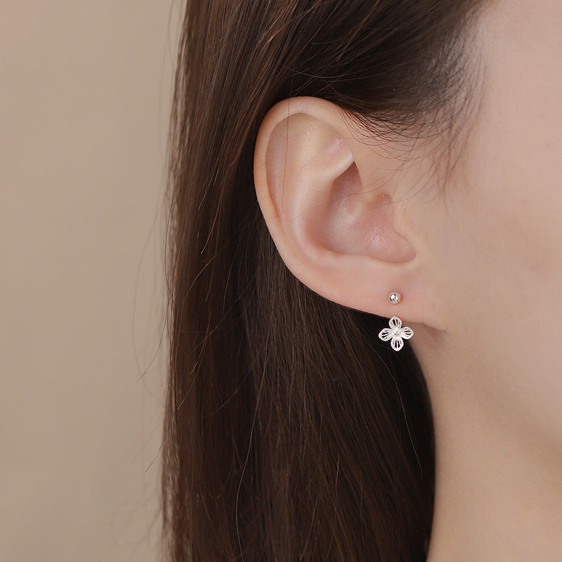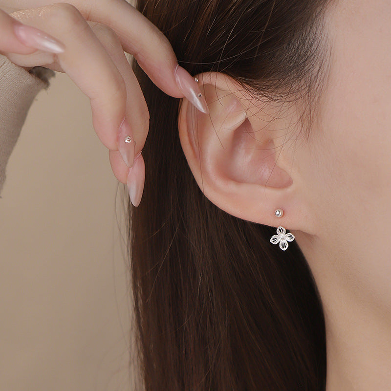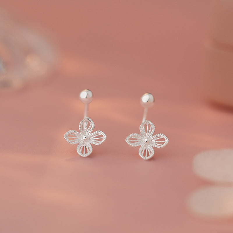 E廠【YC2158E】S999足銀四葉草螺絲耳環個性甜美禁止鏤空花朵簡約耳飾 25.03-4