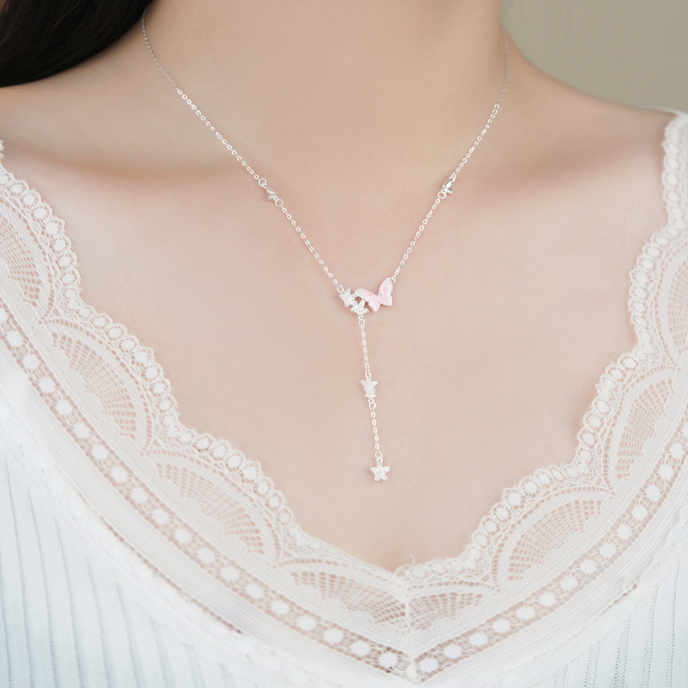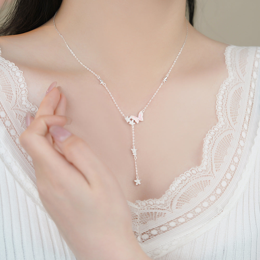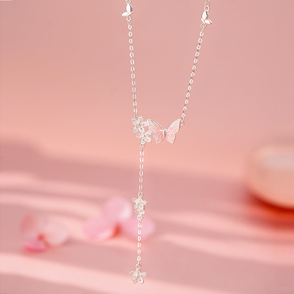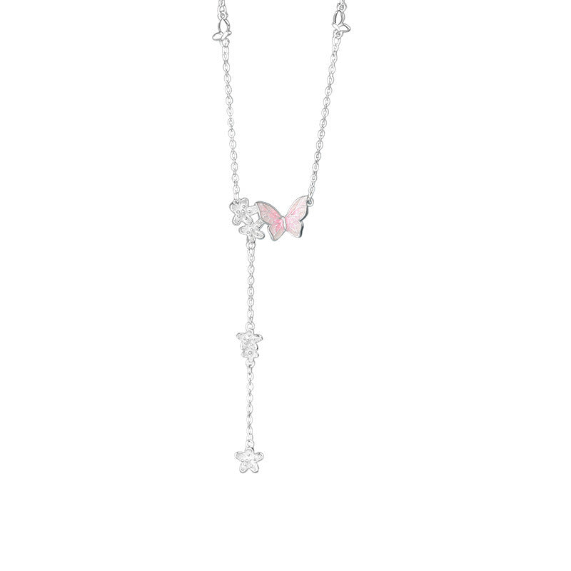 D廠【YC2185N】足銀S999滴膠蝴蝶花朵流蘇項鍊清新森系淡雅小眾顯瘦鎖骨鏈 25.11-4