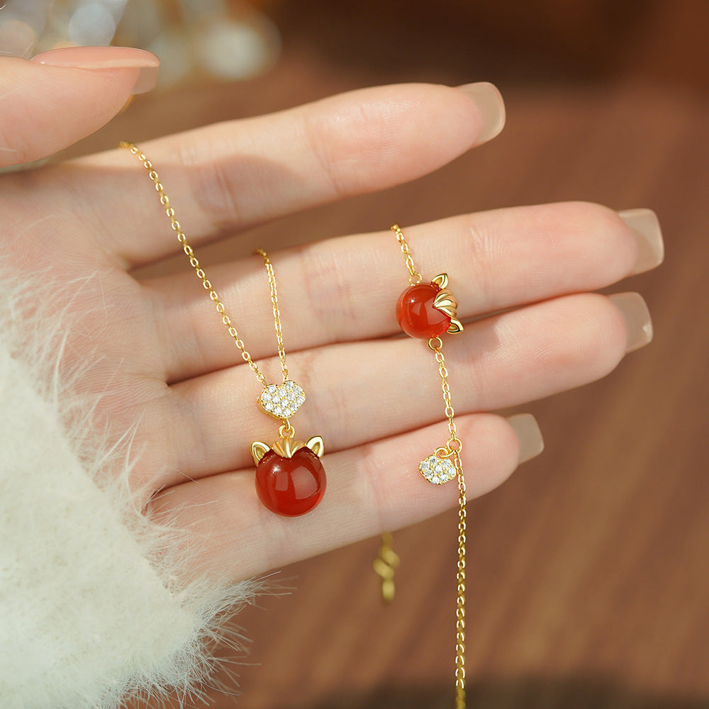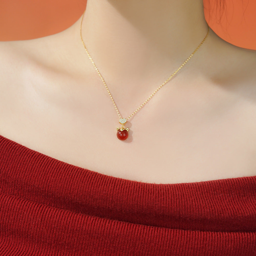 D廠【YC2267N】原創純銀S925福運小馬本命年手鍊如意紅瑪瑙項鍊新年首飾 25.12-1