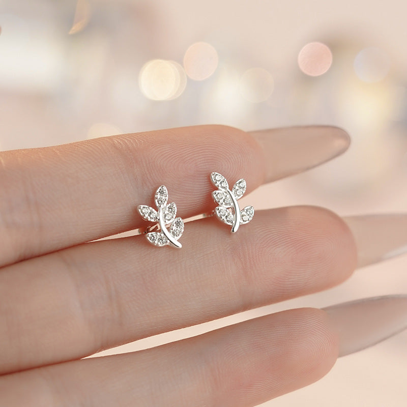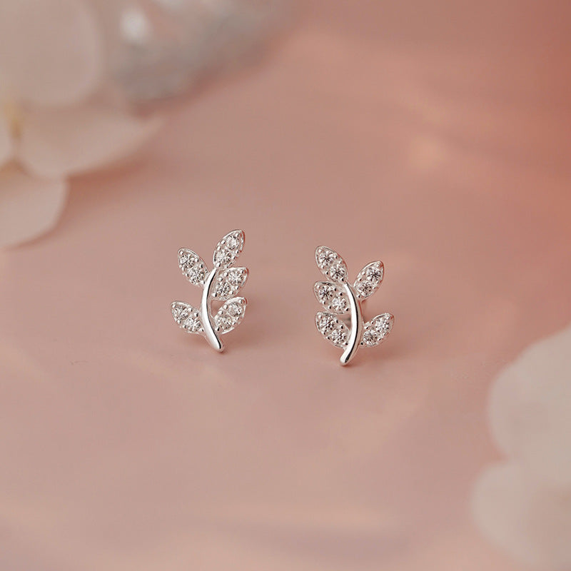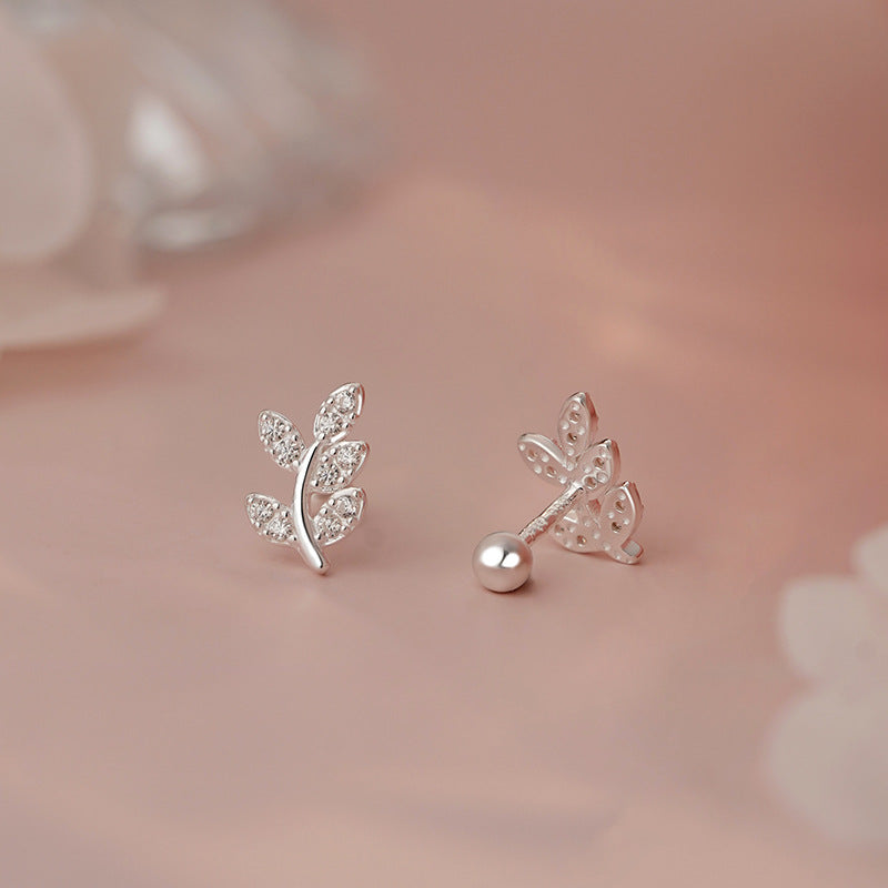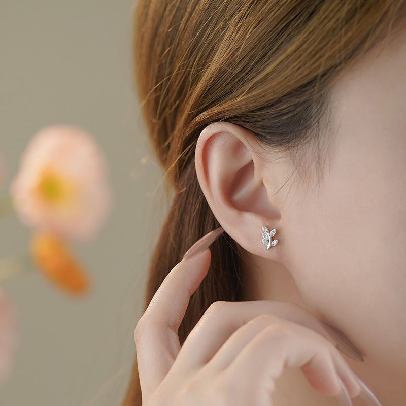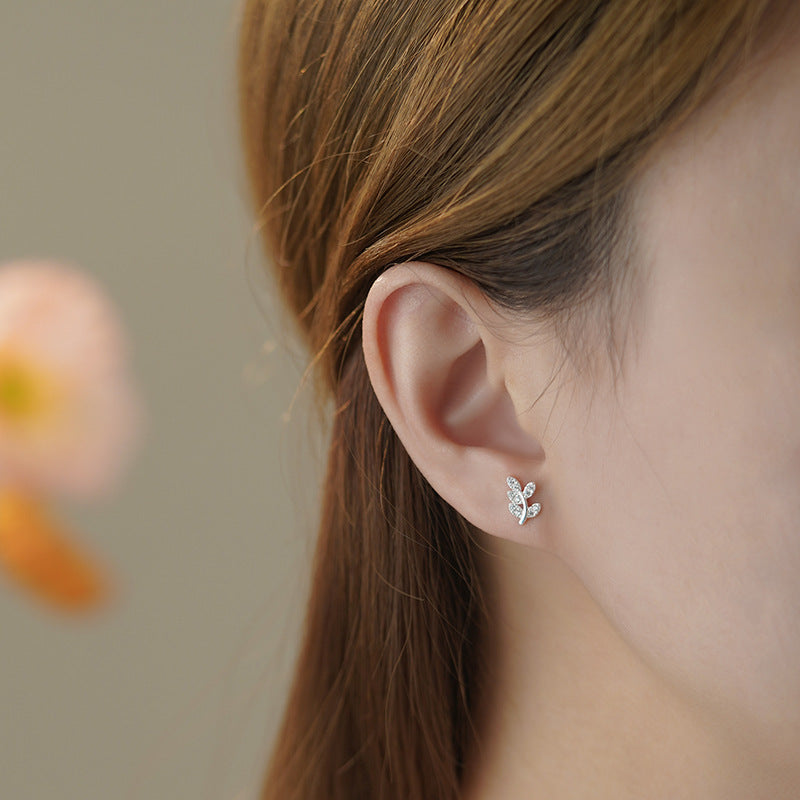 E廠【YC2278E】S999足銀森系樹葉螺絲耳環女精緻小清新田園風高級感耳飾 25.05-3