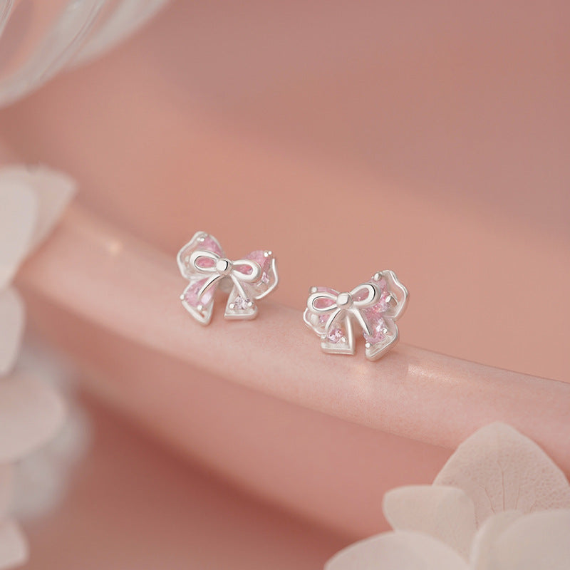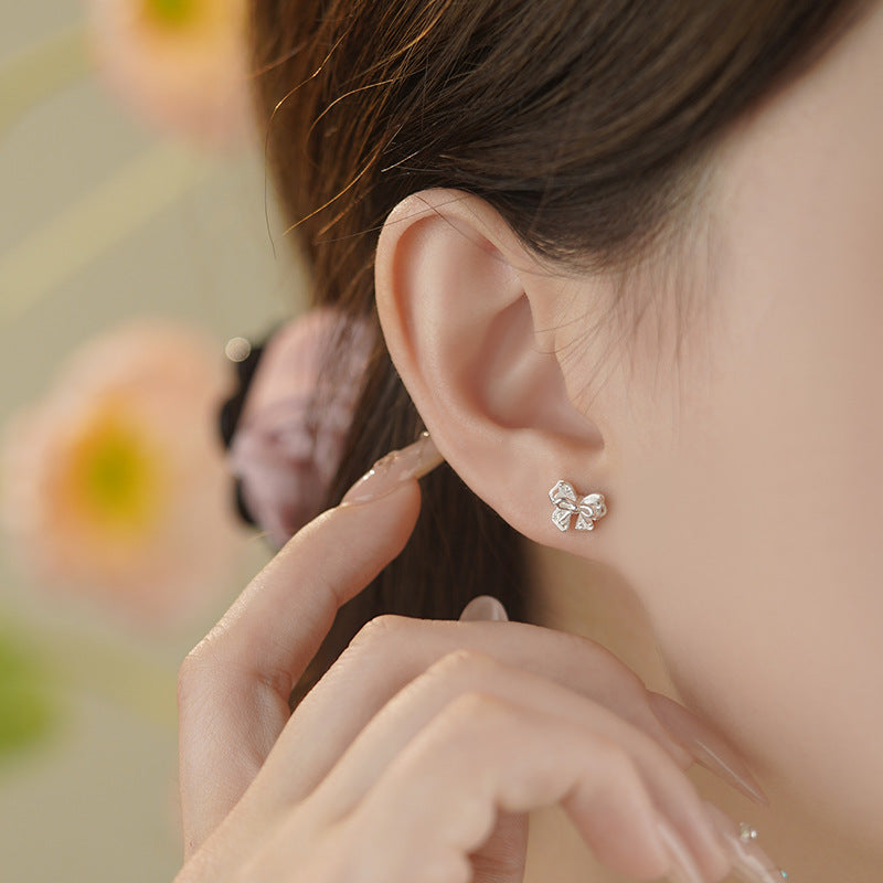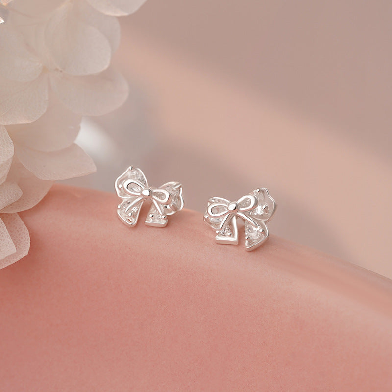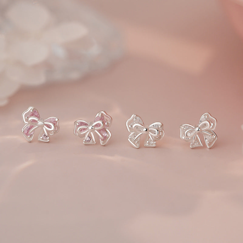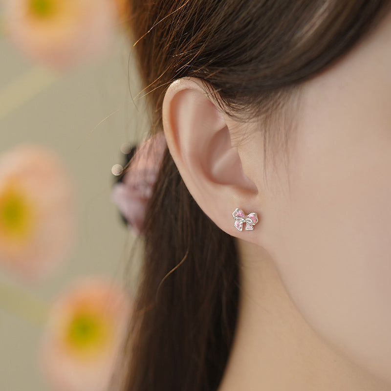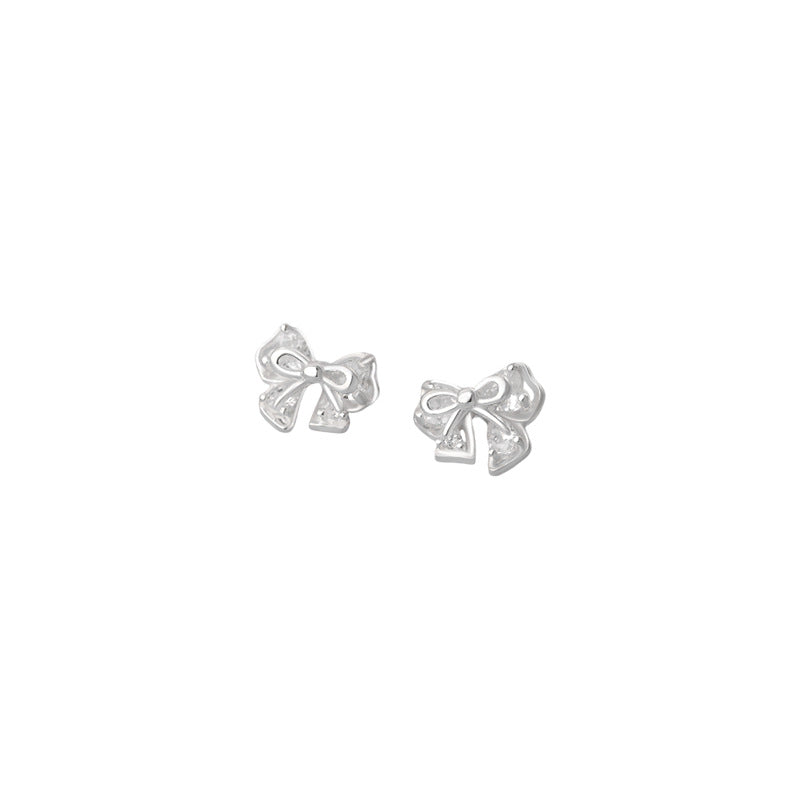 E廠【YC2442E】S999足銀蝴蝶結鋯石耳環 清新文藝韓風韓式小眾溫柔耳飾 25.06-2