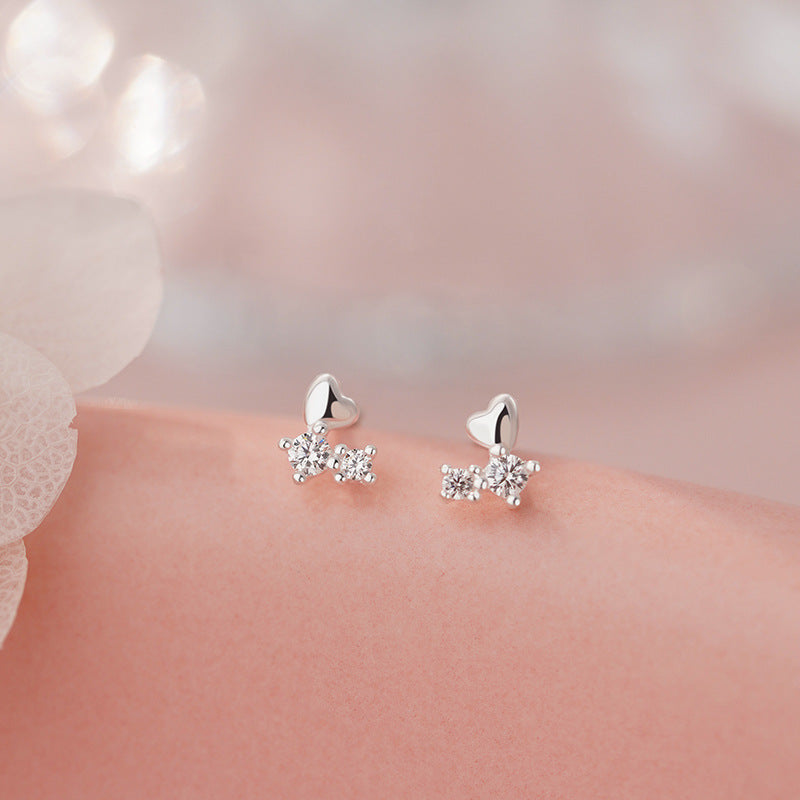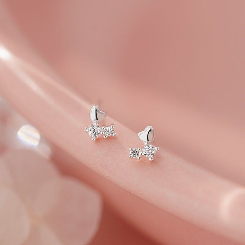 E廠【YC2482E】S999足銀愛心鋯石耳環簡約甜美小眾精緻小巧淑女溫柔耳飾 25.07-1