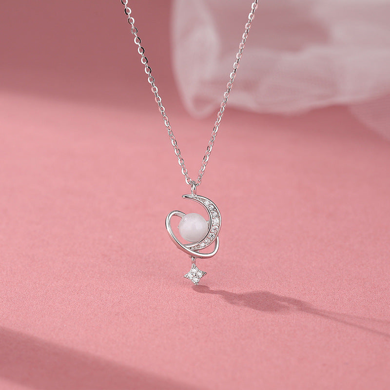 E廠【YC2569N】S925純銀星球項鍊個性風潮氣質送閨蜜禮物簡約小眾鎖骨鏈 24.07-1