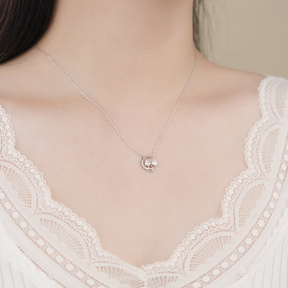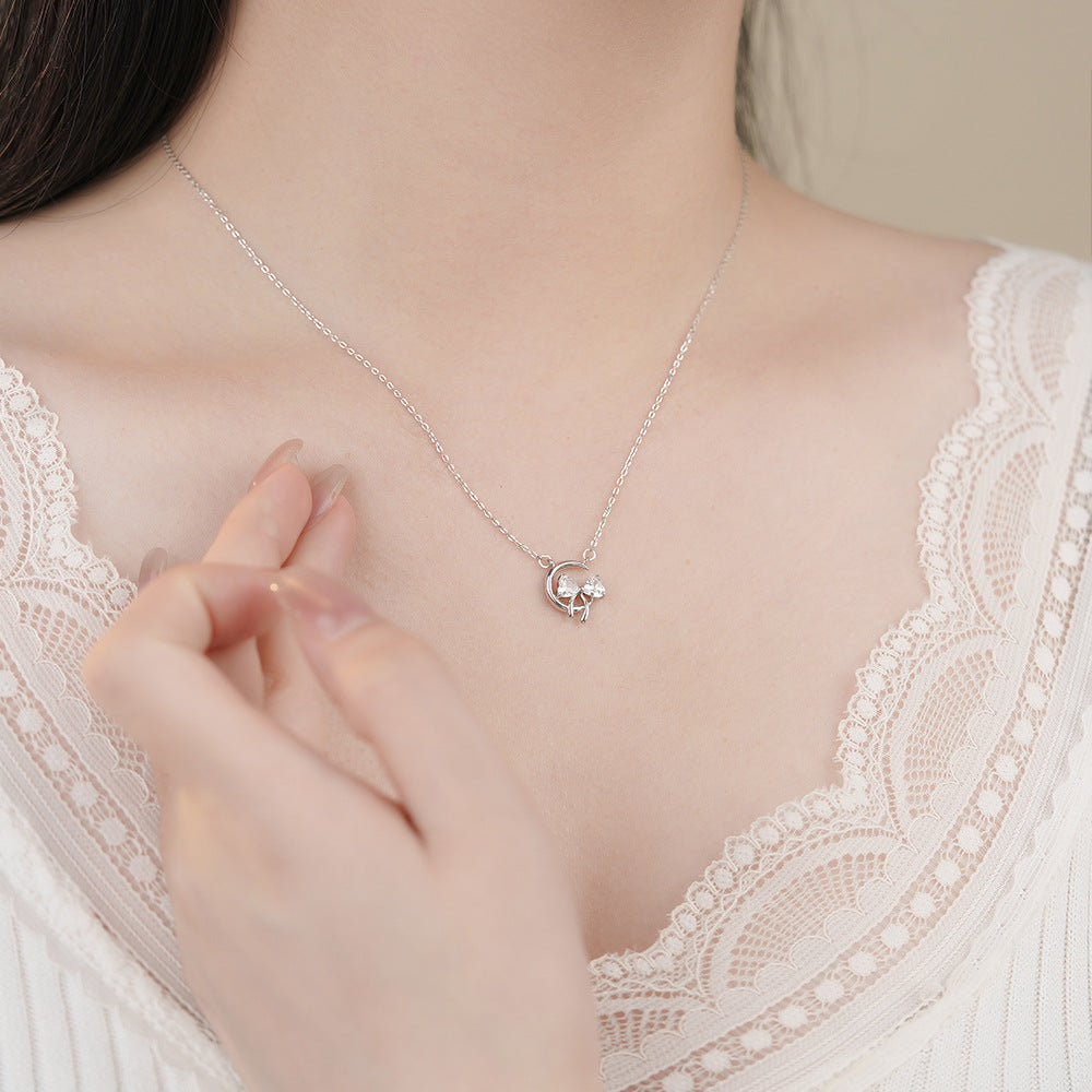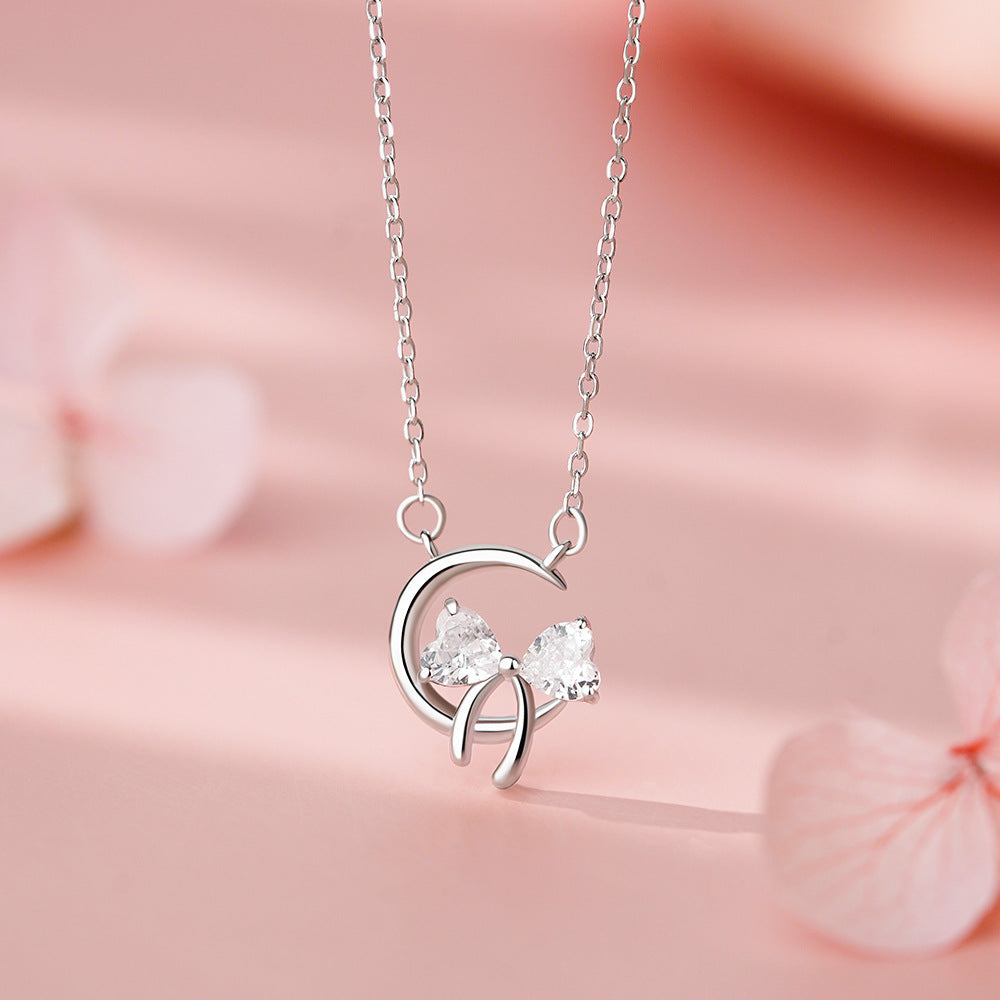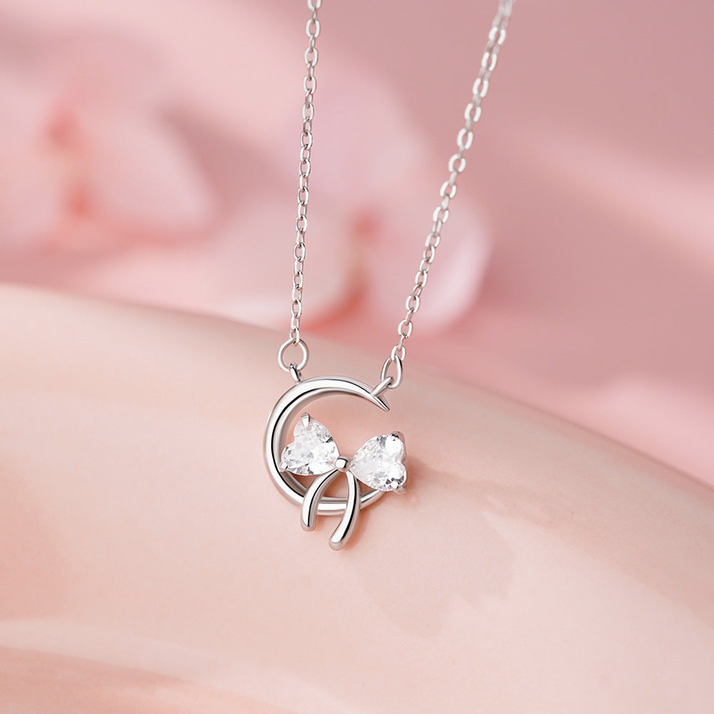 D廠【YC2587N】純銀S925月亮蝴蝶結項鍊甜美公主少女心精美吊墜鎖骨鏈 25.12-1