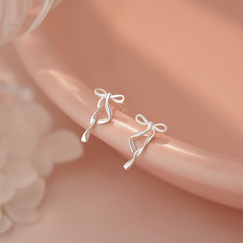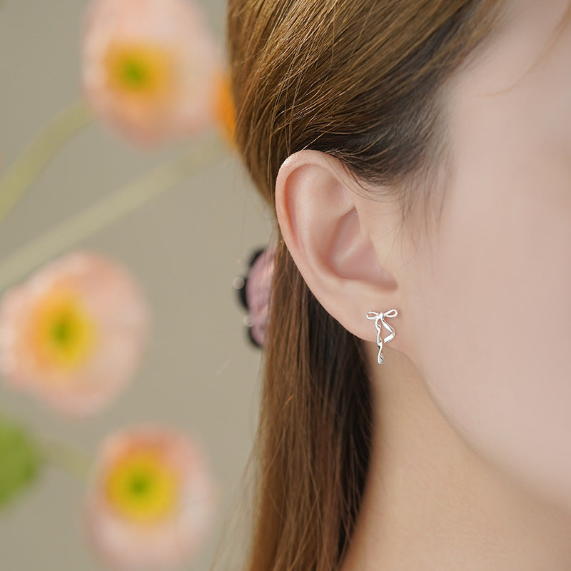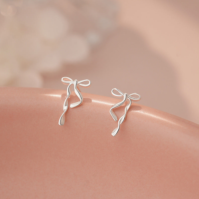E廠【YC2627E】S999足銀飄帶蝴蝶結耳環清新韓風可愛精緻公主養耳洞耳飾 25.05-5