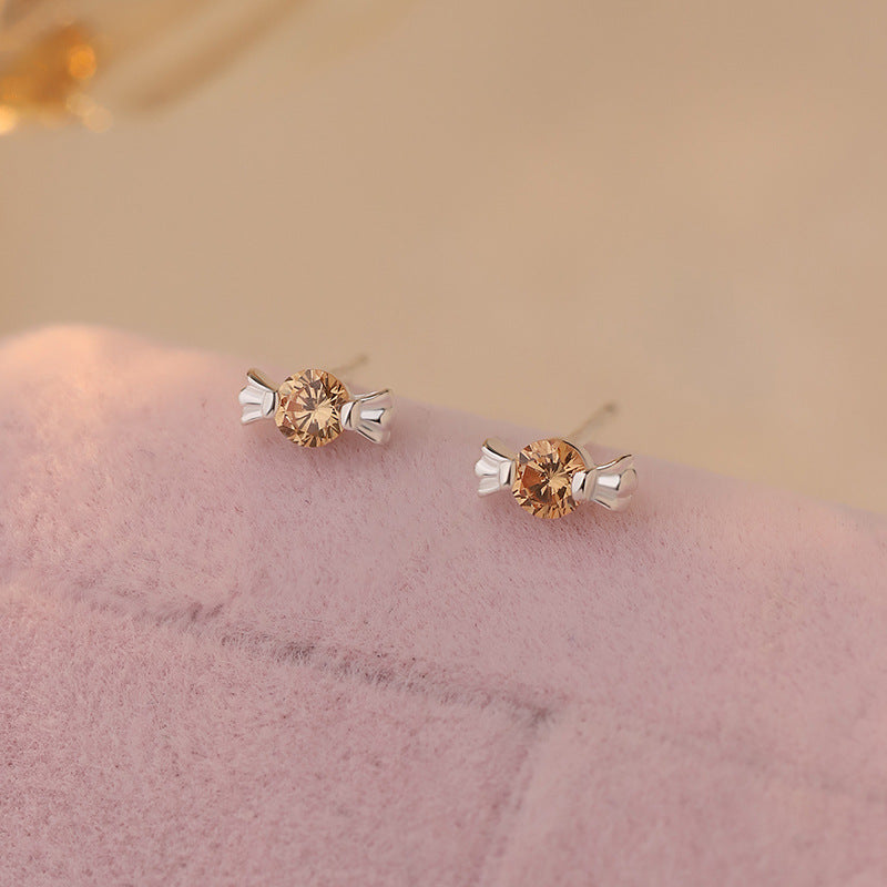 E廠【YC2726E】S999足銀甜美糖果鋯石耳環女可愛童趣創意溫柔ins風耳飾 24.12-2