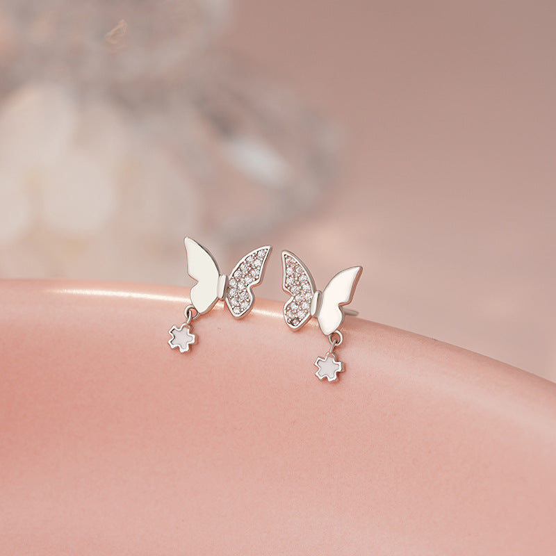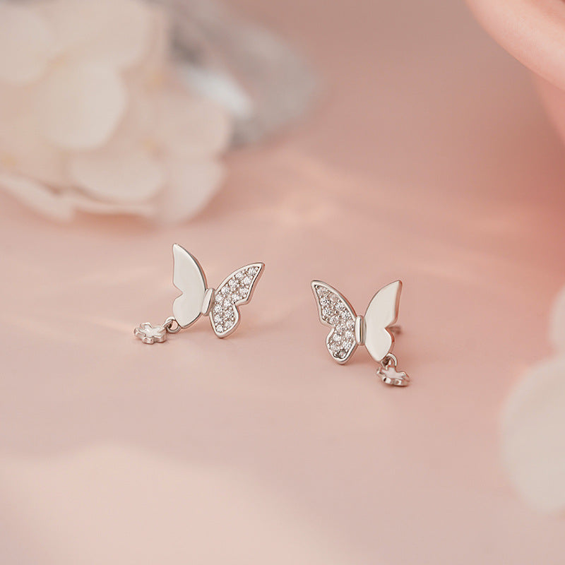 E廠【YC2732E】S999足銀精美蝴蝶鋯石花朵耳環女輕奢高級爆款設計感氣質耳飾 25.05-3