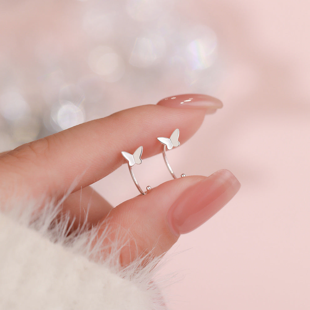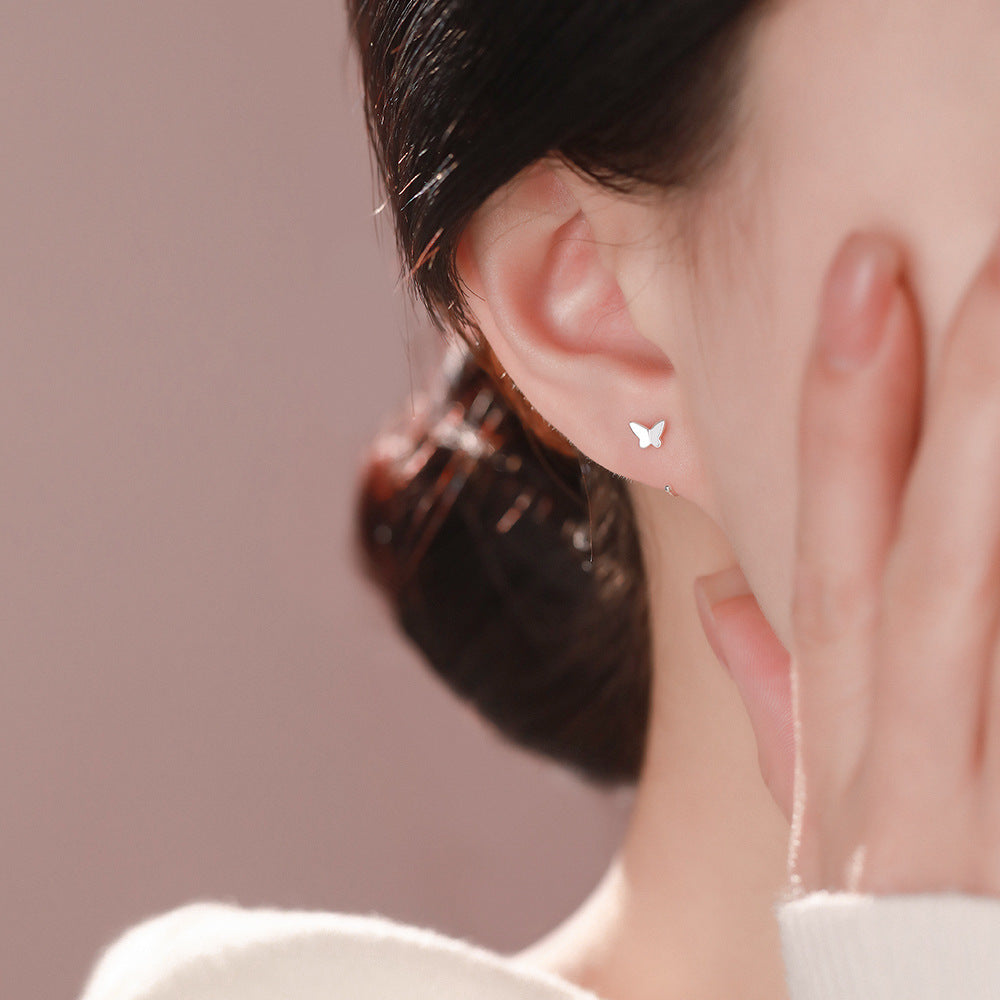 D廠【YC2874E】足銀S999蝴蝶耳環個性百搭清新森系簡約可愛溫柔氣質小巧耳飾 26.01-2