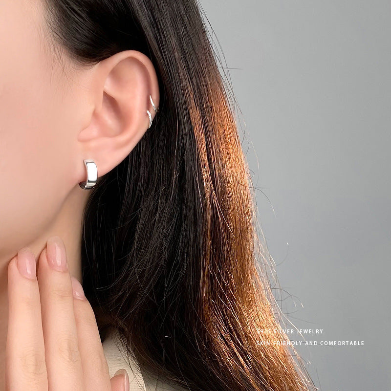 E廠【YC2976E】S925純銀簡約圓環耳環女素圈小眾設計感百搭耳圈耳飾品 24.02-3
