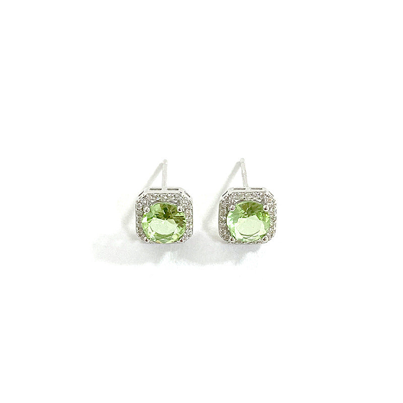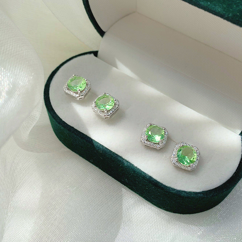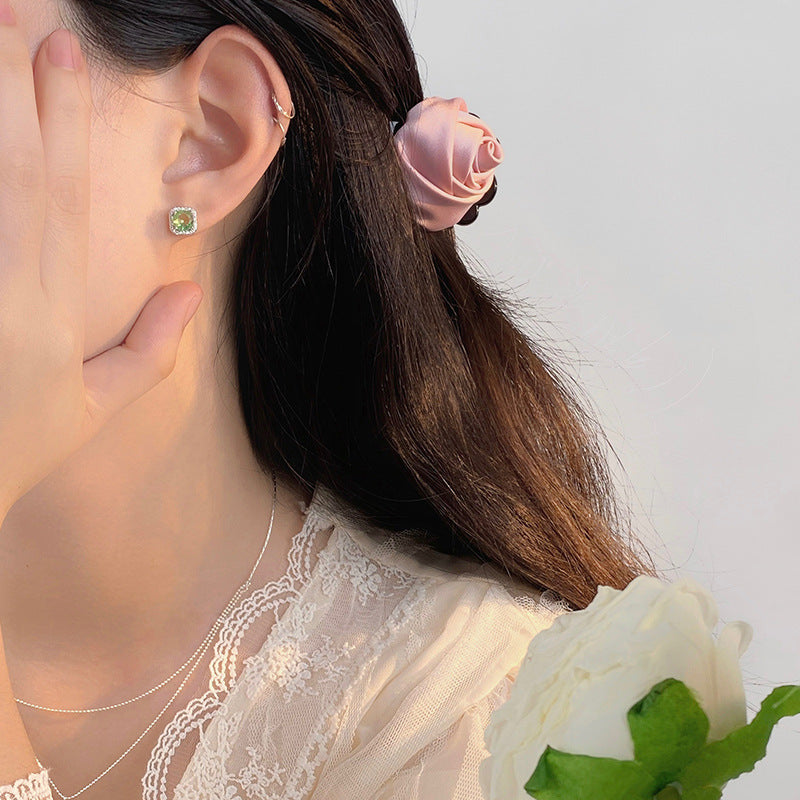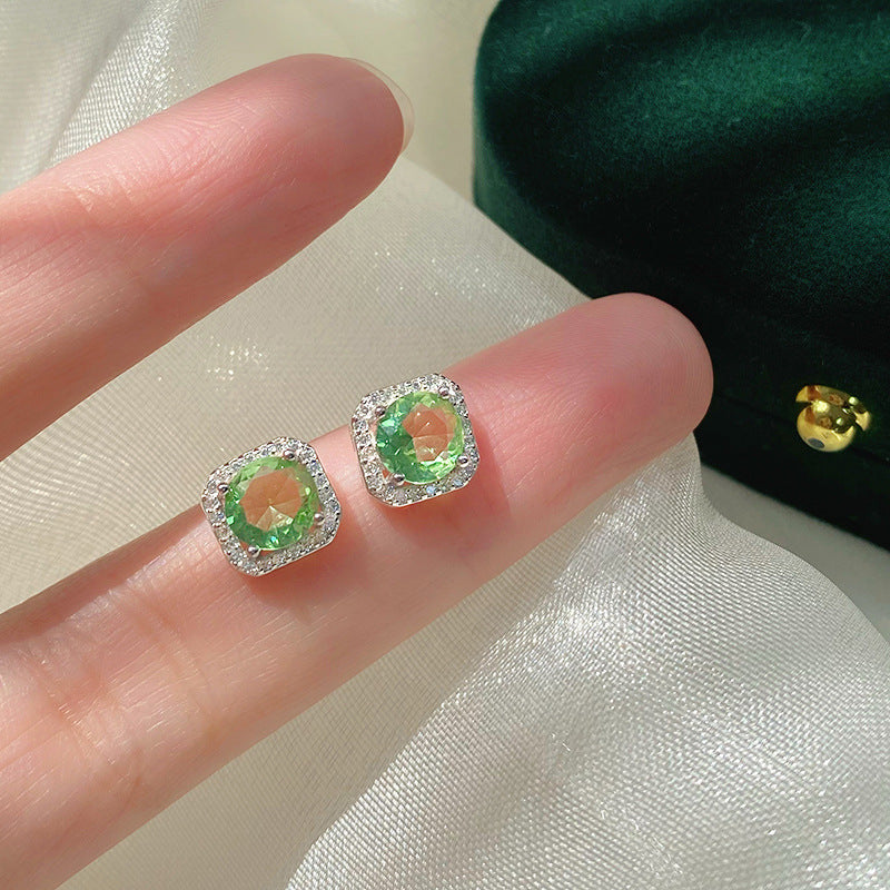 E廠【YC3099E】S925純銀氣質復古方形綠方糖耳環女時尚百搭輕奢韓範耳環 24.06-2