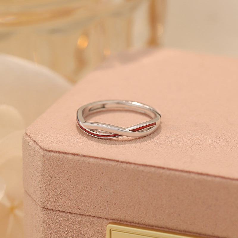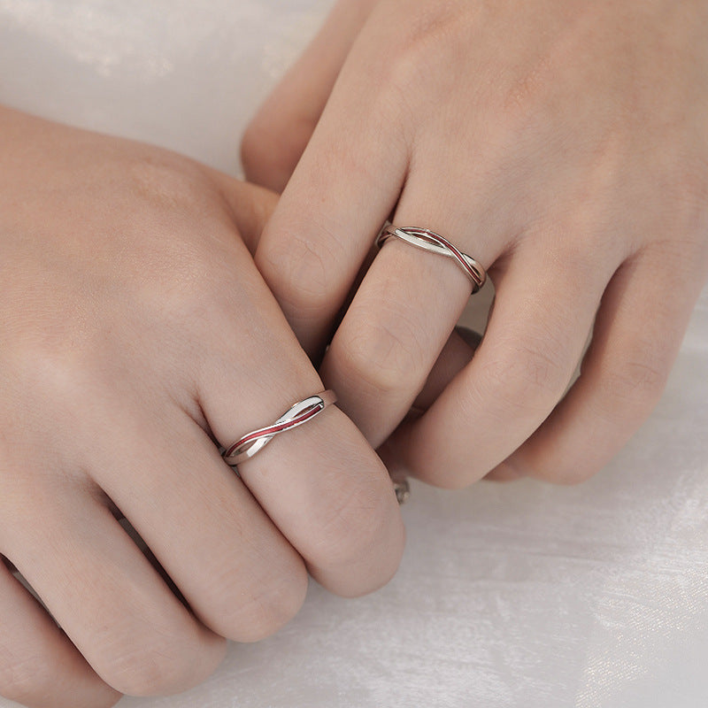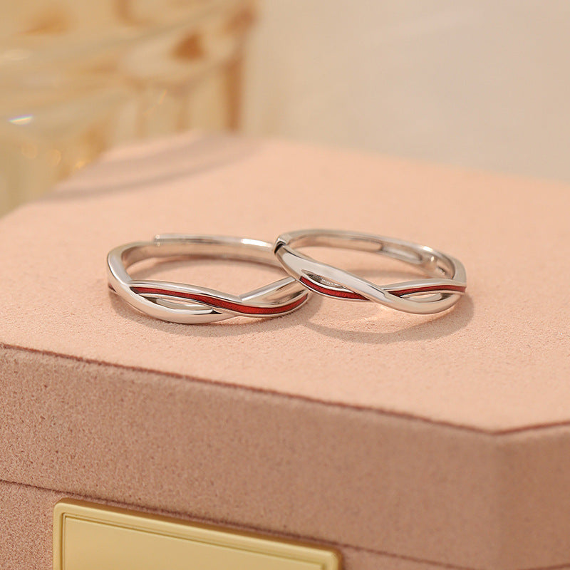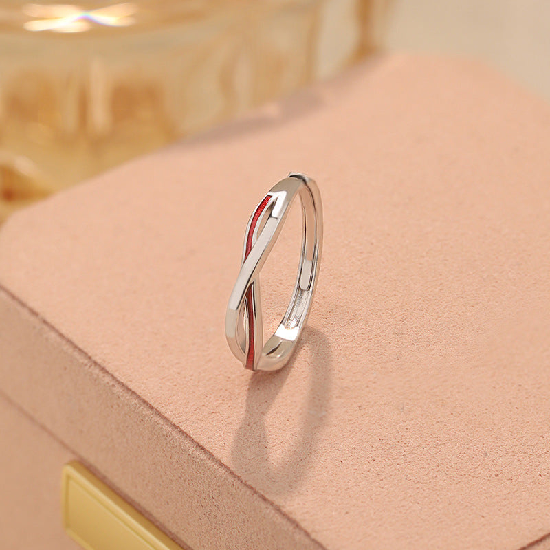 E廠【YC3106R】S999足銀紅線莫比烏斯戒指輕奢小眾開口戒簡約情侶戒指 25.02-2