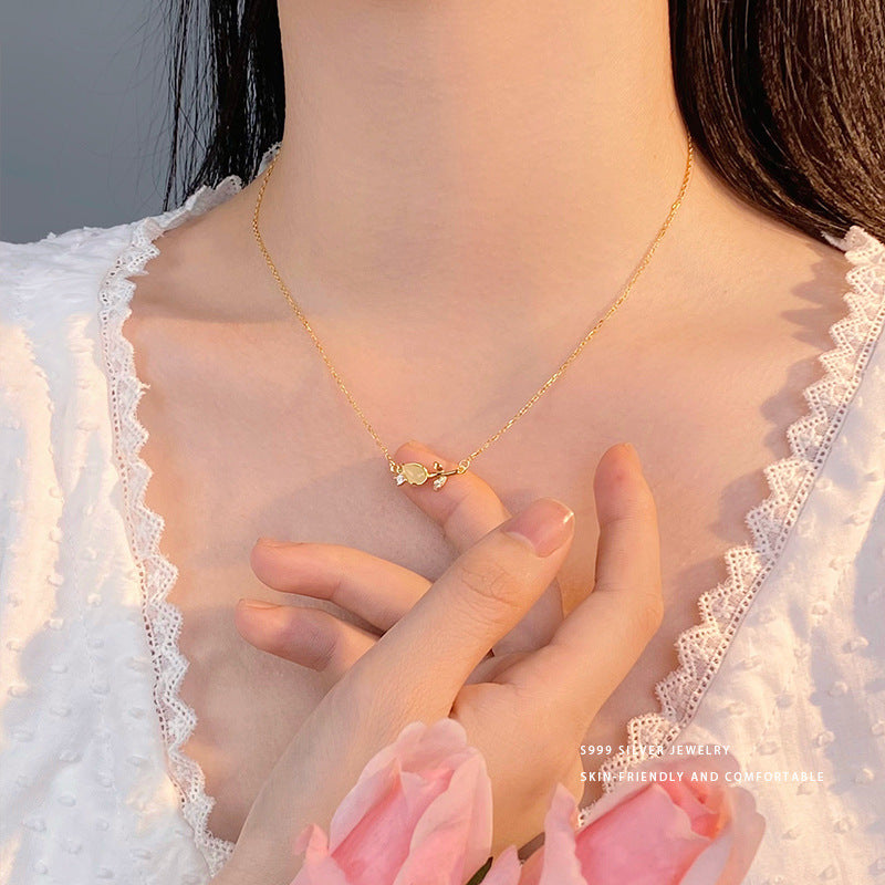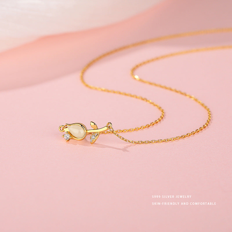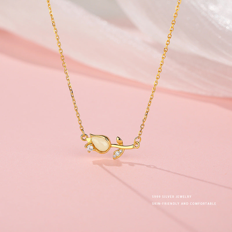 E廠【YC3134N】S999足銀輕奢鬱金香項鍊女甜美小眾高級感氣質優雅鎖骨鏈 24.05-3