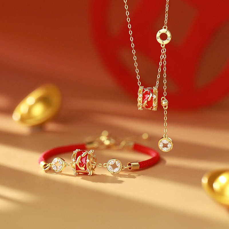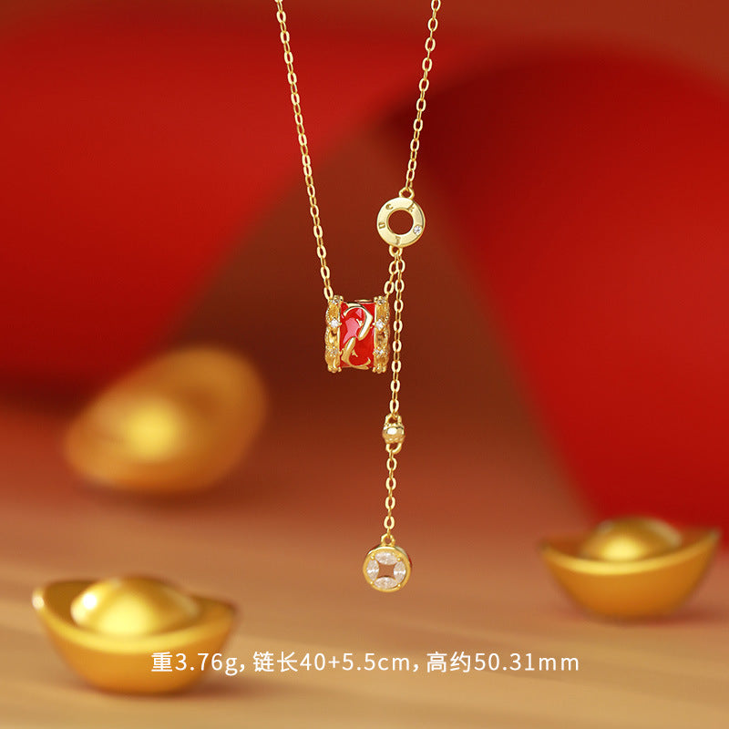 E廠【YC3223N】原創S999足銀轉運錦鯉圓環流蘇項鍊本命年手鍊如意首飾 25.10-5
