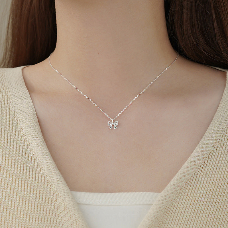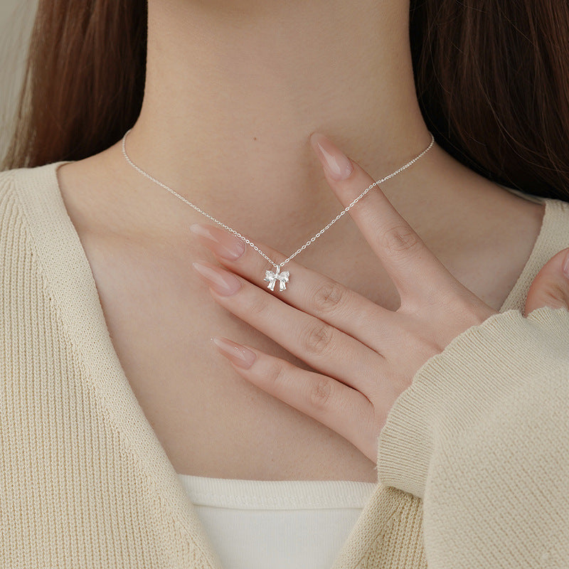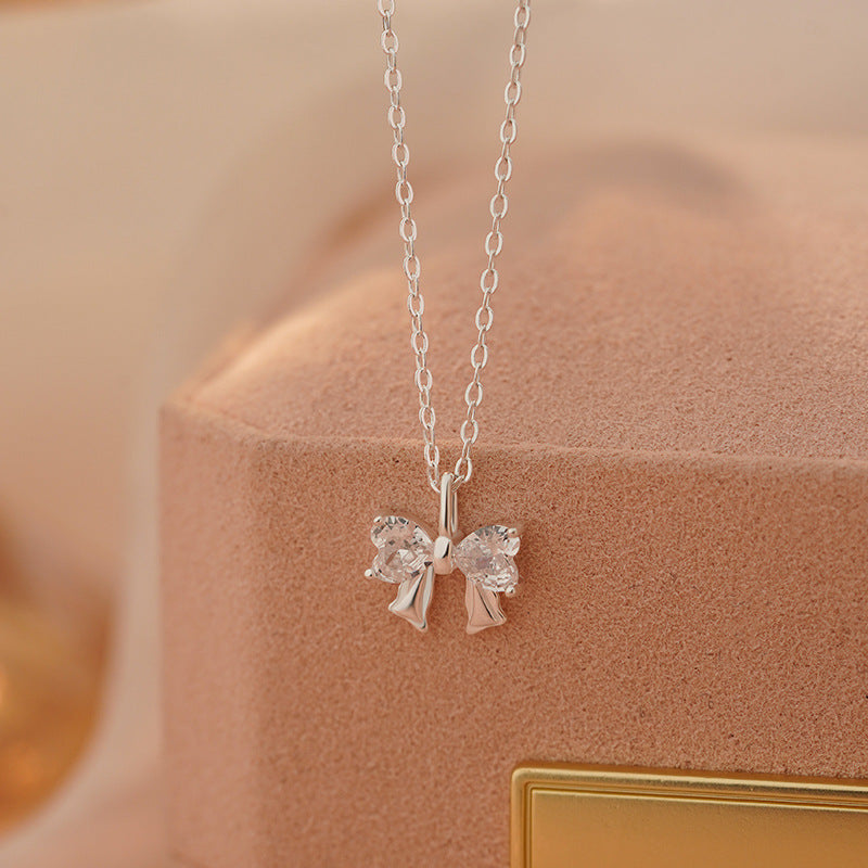 E廠【YC3225N】S999足銀鋯石蝴蝶結項鍊新款輕奢甜美文藝小眾氣質鎖骨鏈 25.03-1