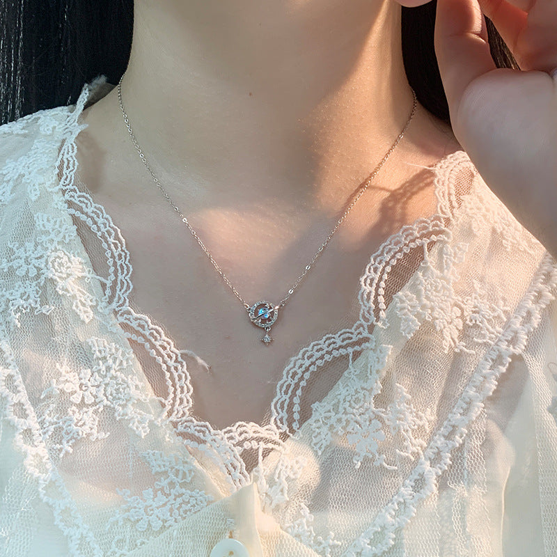 E廠【YC3242N】S999足銀夢幻星月星球八芒星項鍊女設計感高級感鎖骨鏈 24.07-1