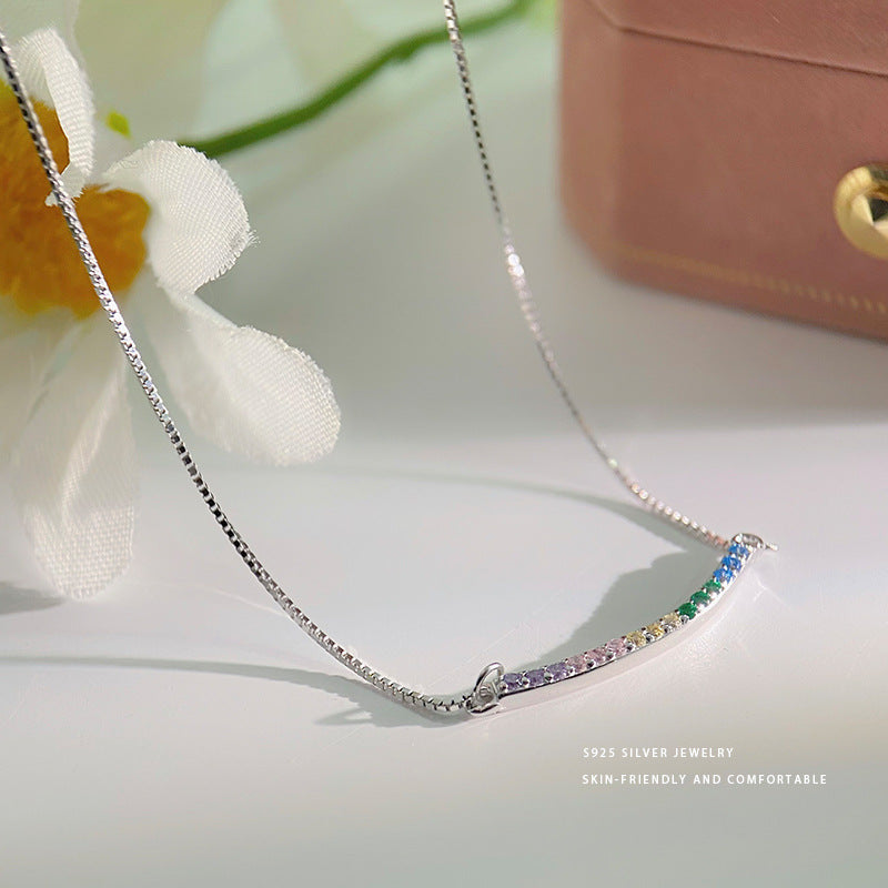 E廠【YC3278N】S925純銀甜美彩鑽微笑項鍊女夏日小清新新款鎖骨鍊頸飾品 24.03-5